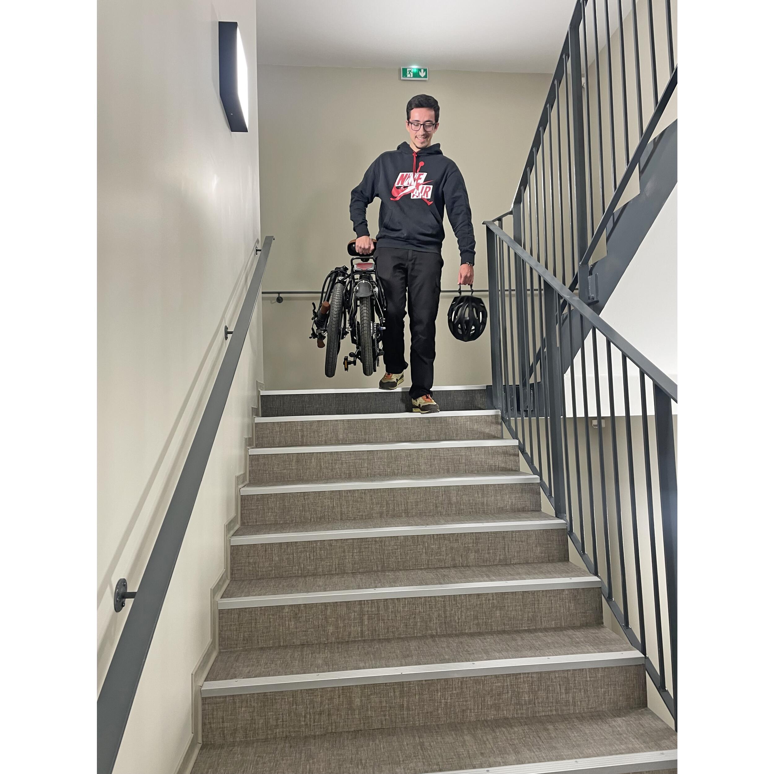 Pliable :Plus besoin de grands espaces pour ranger votre vélo entre deux sorties, pliez et dépliez votre vélo au gré de vos envies grâce à son système de pliage en 2 points.
