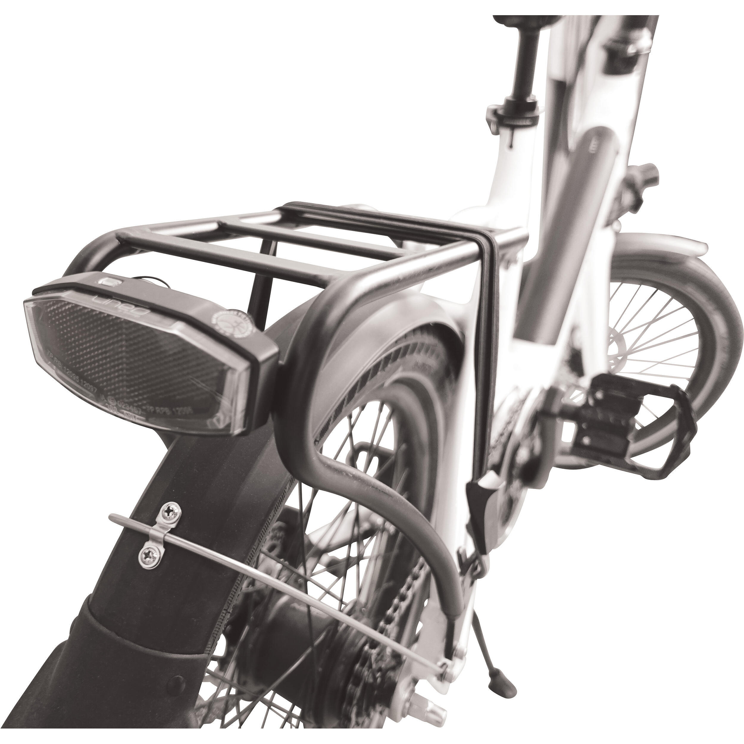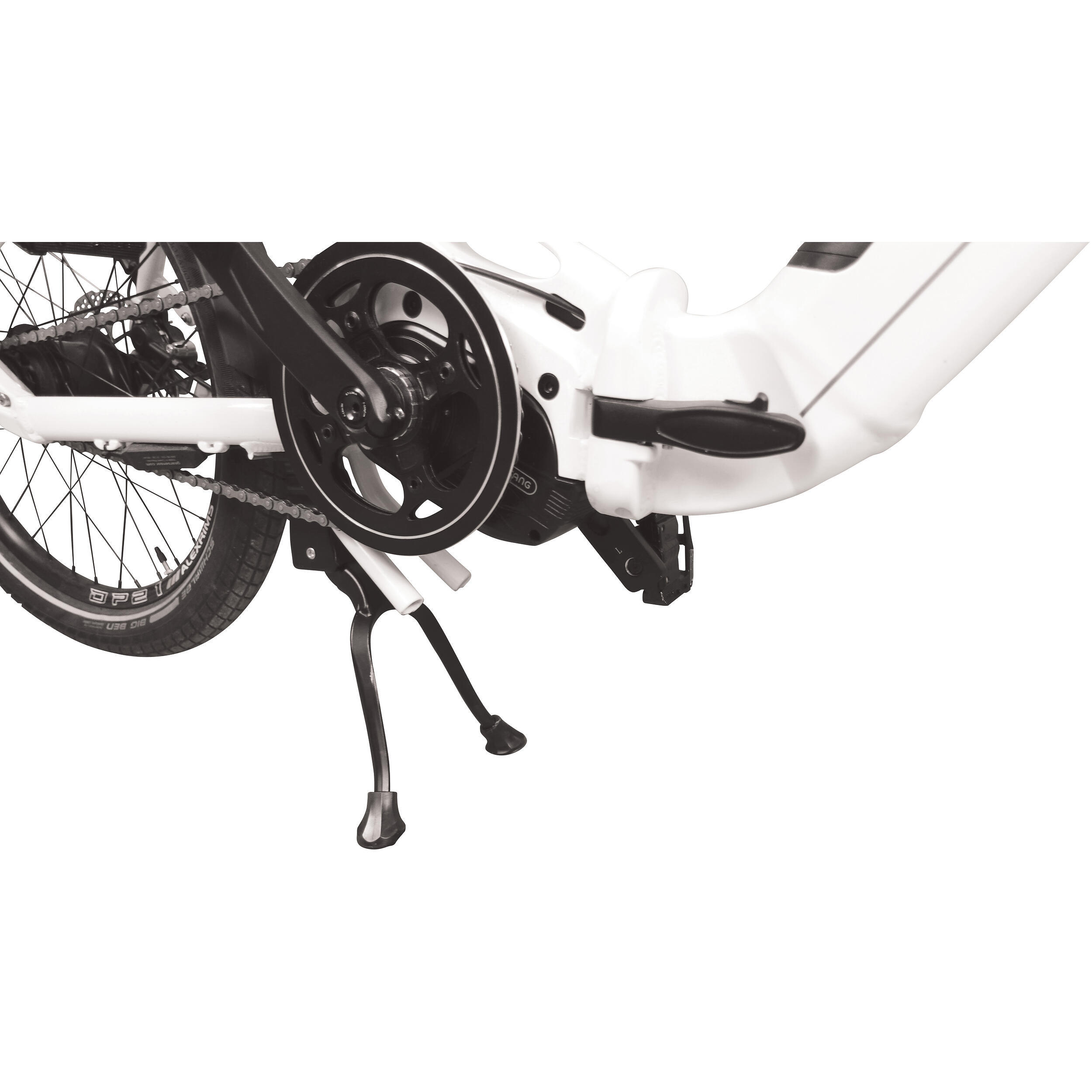 La béquille centrale assure une bonne stabilité lorsque le vélo est plié.