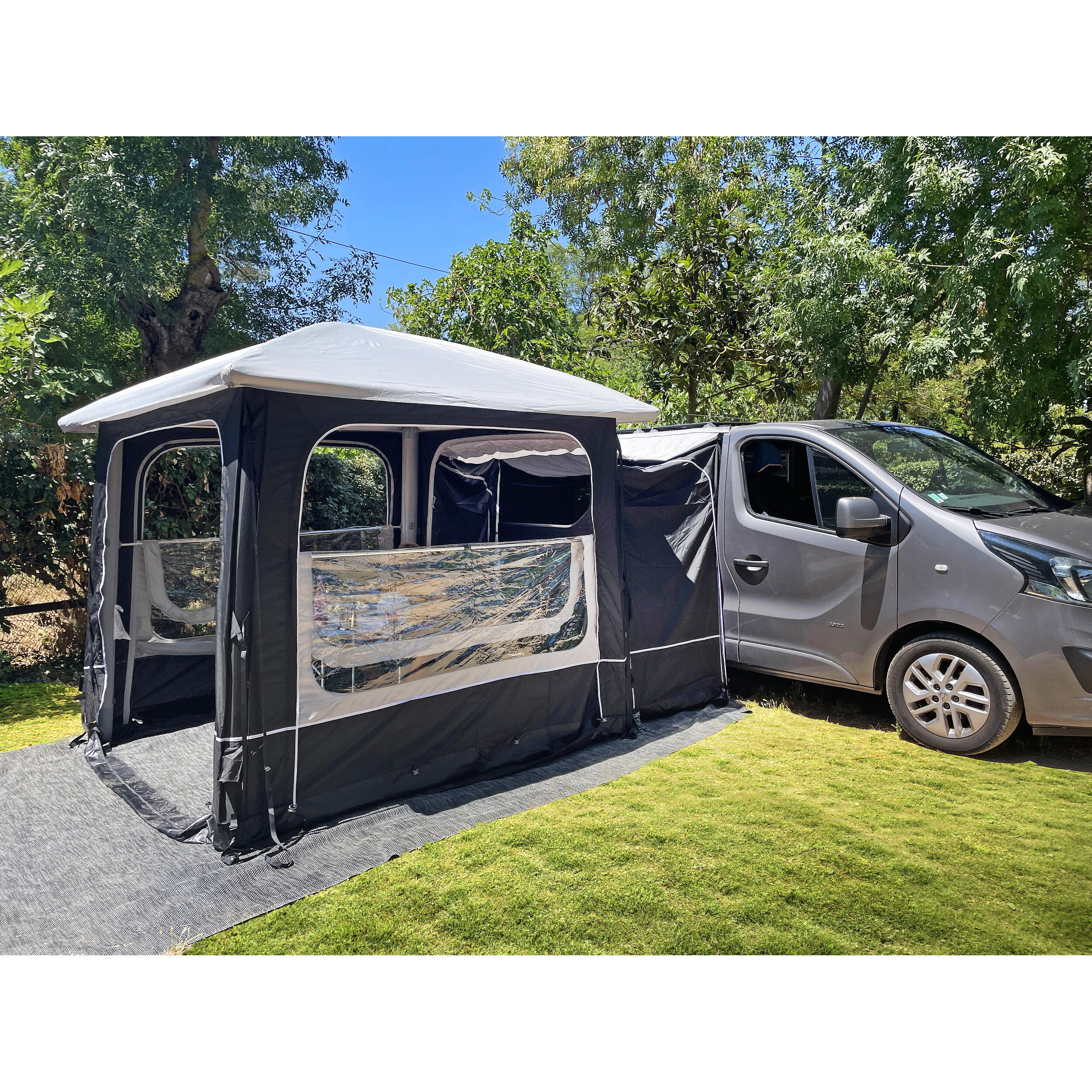 Ce tunnel de raccordement latéral vous permet de connecter facilement votre abri Lodge Air au côté de votre van ou véhicule, créant ainsi un espace supplémentaire bienvenu. Que ce soit pour stocker du matériel, aménager un coin détente ou simplement profiter d’une pièce en plus, ce tunnel s’intègre parfaitement à votre installation existante. Il est idéal pour les longs séjours en camping ou les voyages où le confort et l’organisation sont essentiels, sans sacrifier la mobilité.