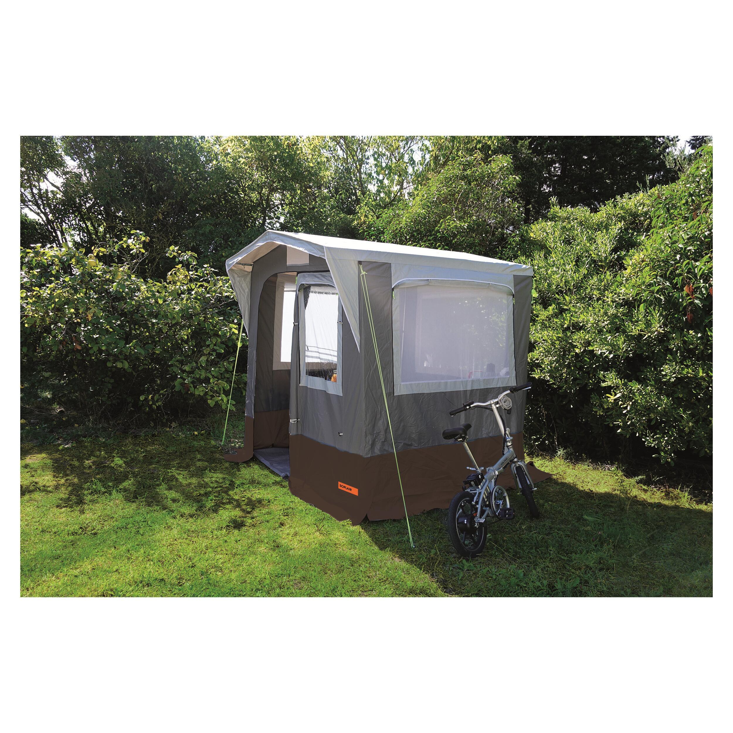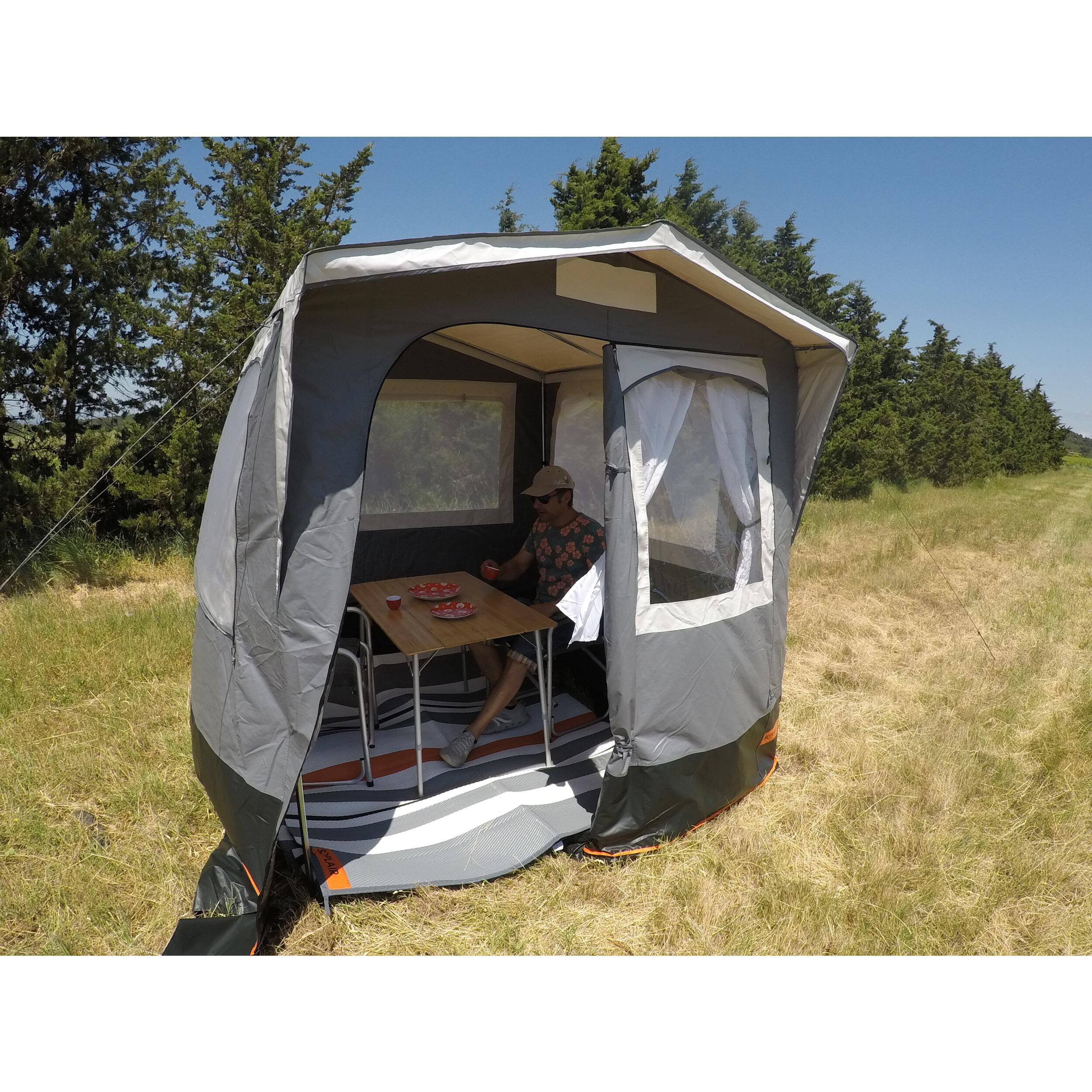L'abri extérieur Oasis de Soplair est conçu pour répondre aux besoins des campeurs en quête de confort et de praticité. Cet espace additionnel est idéal pour créer un coin cuisine ou pour ranger et protéger efficacement vos équipements de camping. Son montage rapide et intuitif en fait un choix parfait pour les voyageurs qui ne souhaitent pas perdre de temps à installer leur matériel. Doté d'une toile en PVC robuste et facile d’entretien, cet abri est non seulement résistant mais également adapté aux conditions de plein air.