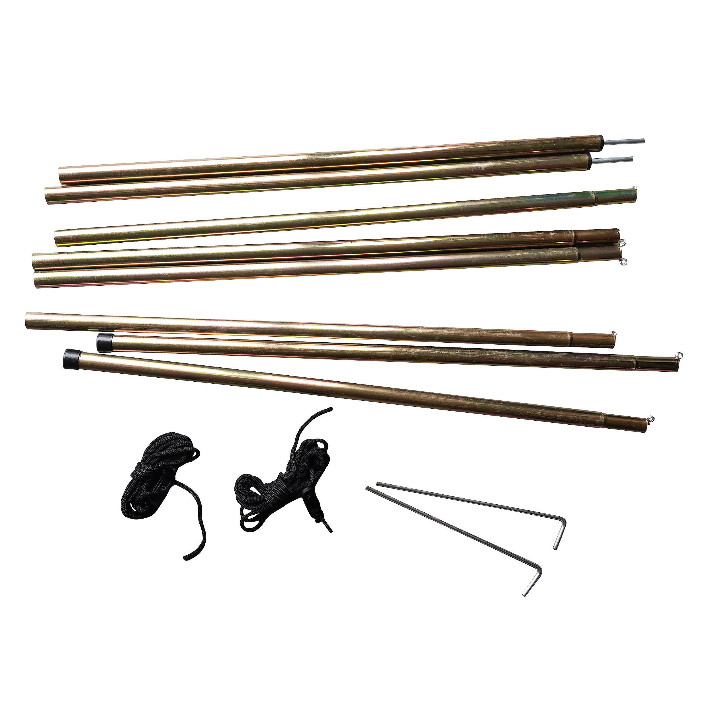 La corde et les piquets permettent de tendre et fixer l’auvent au sol.