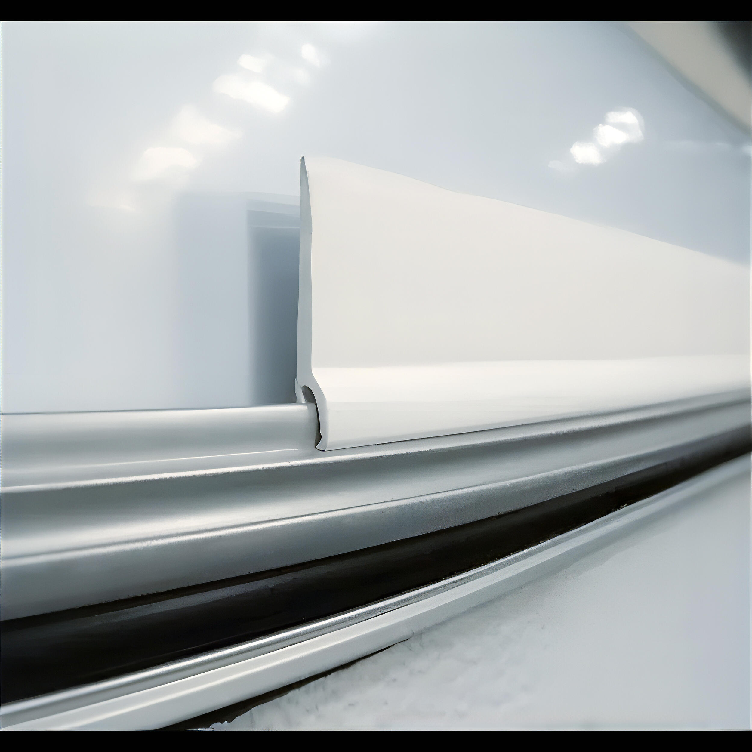 Bande de protection pour rail de caravane Eriba, qui empêche l’eau de pluie de stagner entre le toit et l’auvent et facilite son évacuation.