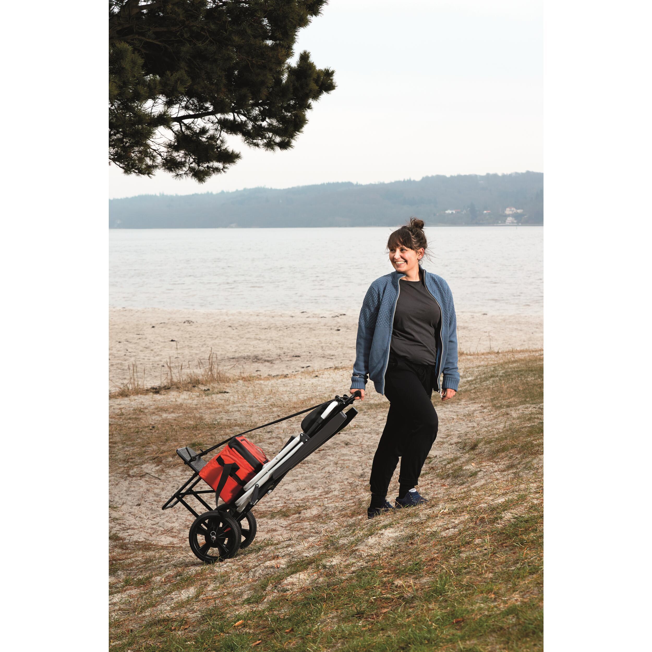 - Pneus extra larges pour rouler facilement sur l'herbe, le sable et le gravier