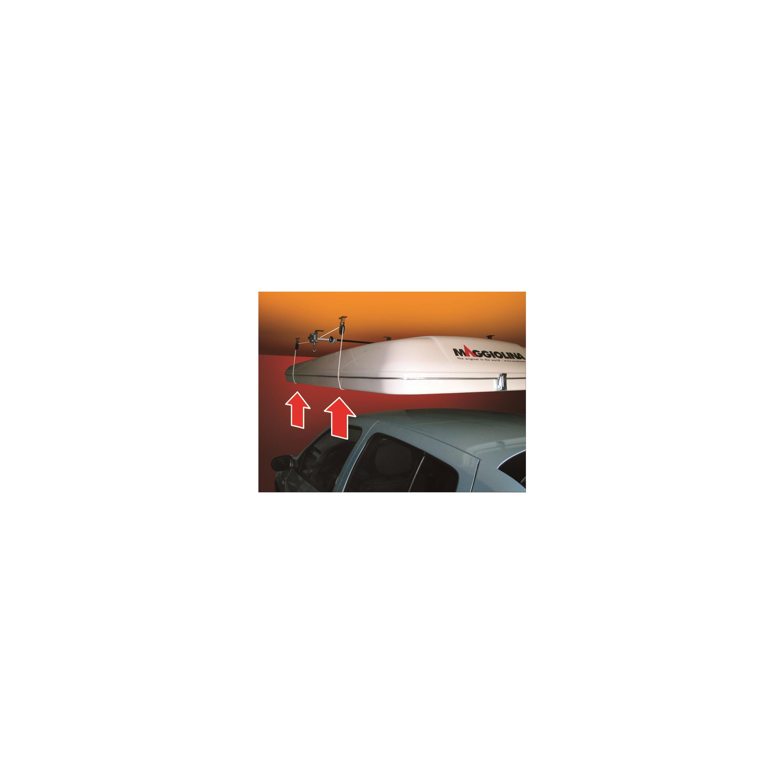 Pour le rangement au garage. Un système à poulies permet de positionner votre tente de toit au plafond.