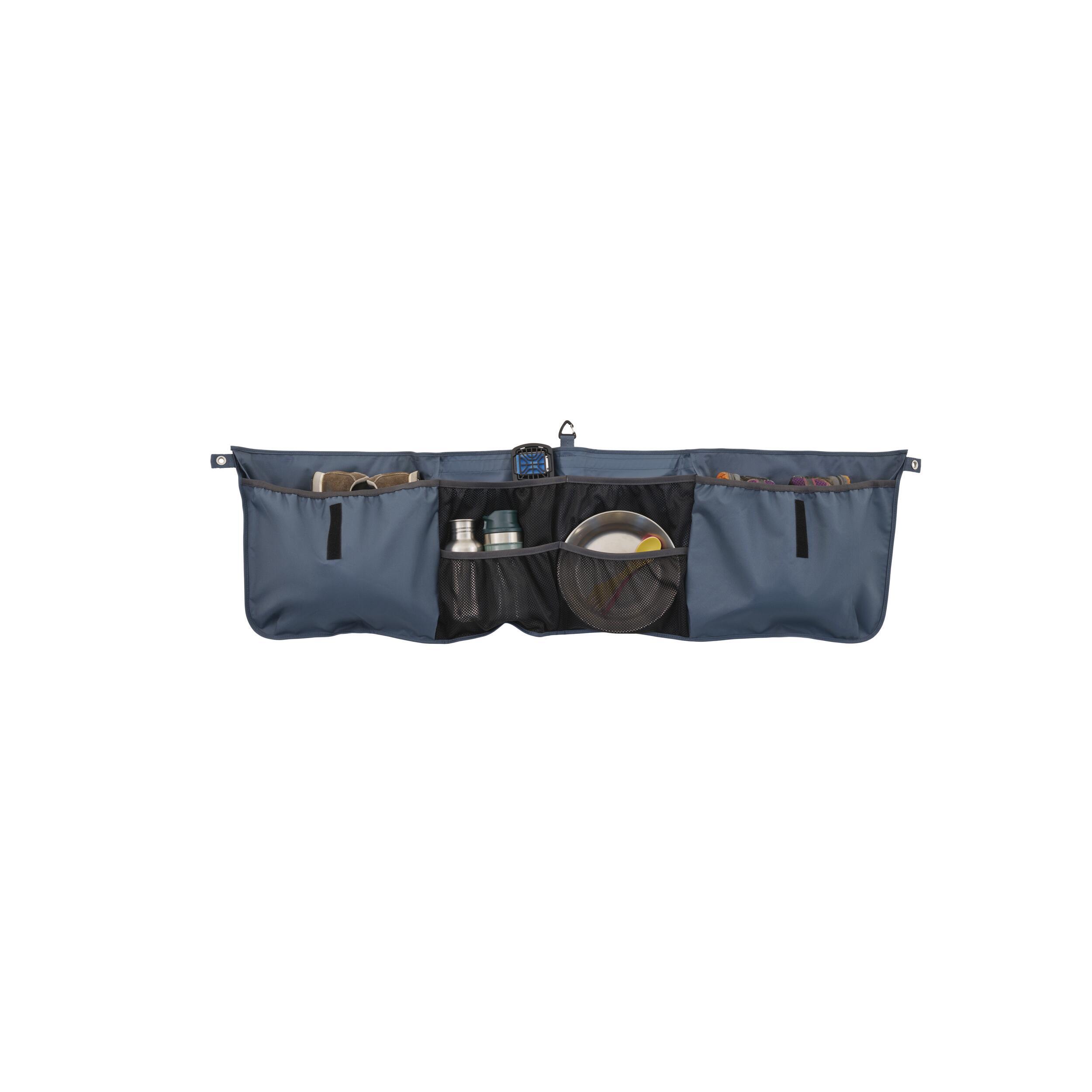 Léger et compact, l’organiseur se fixe en quelques secondes à l’intérieur ou à l’extérieur de la tente Outset grâce à ses attaches robustes. Que vous soyez en bivouac sauvage ou sur une aire aménagée, il s’adapte à vos habitudes et à votre installation. Replié, il se range facilement sans encombrer votre espace de transport.