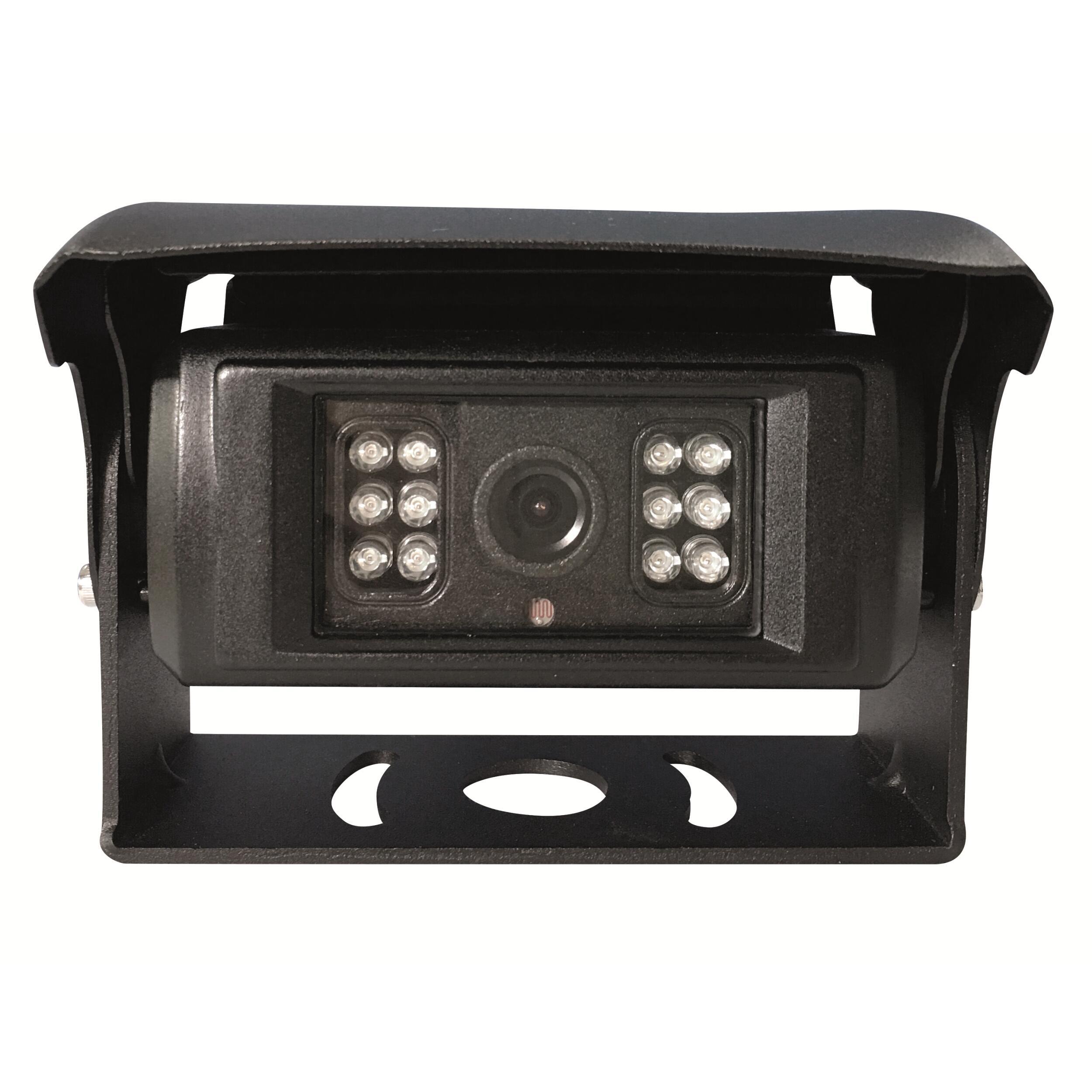 Caméra de recul filaire Inovtech avec LEDs pour vision nocturne, capteur CCD et enclenchement automatique à la marche arrière. Compatible écran 402880B. Livrée sans écran.