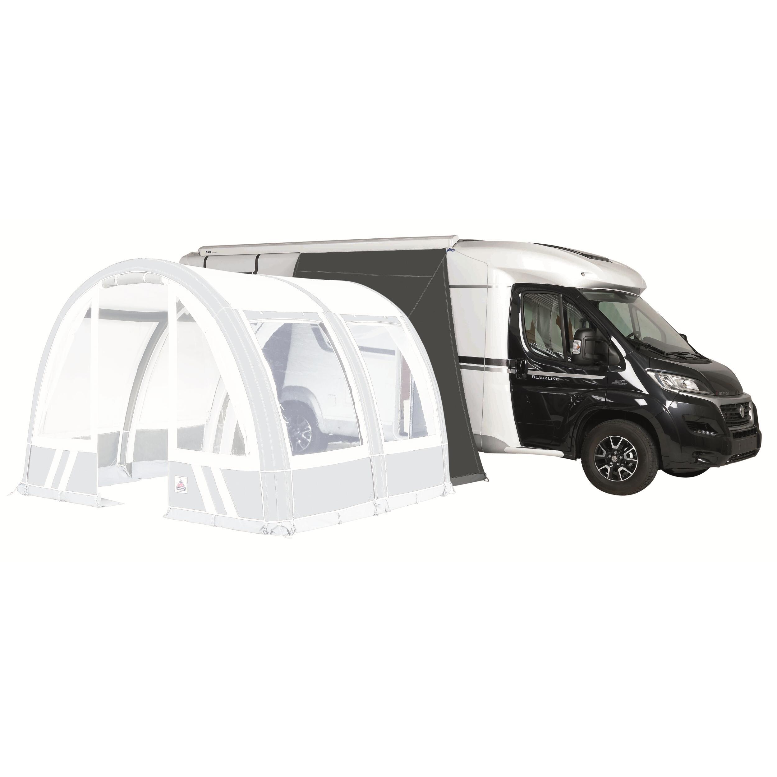 Tunnel de raccordement Traveller Air All season Doréma pour camping-car et fourgon-aménagé. Le raccordement au véhicule de loisirs se fait très facilement, il vous suffit de choisir celui qui correspond à la hauteur de votre véhicule. La connexion s'effectue dans le rail du store ou dans le rail posé sur votre véhicule. Une fermeture à glissière est montée sous le jonc afin de faciliter le départ et l'arrivée du véhicule.