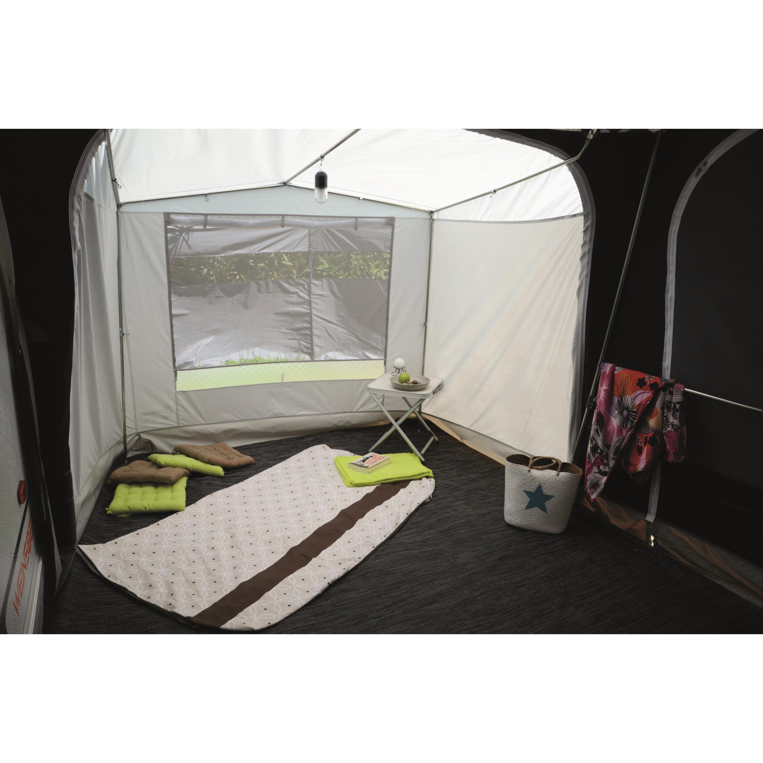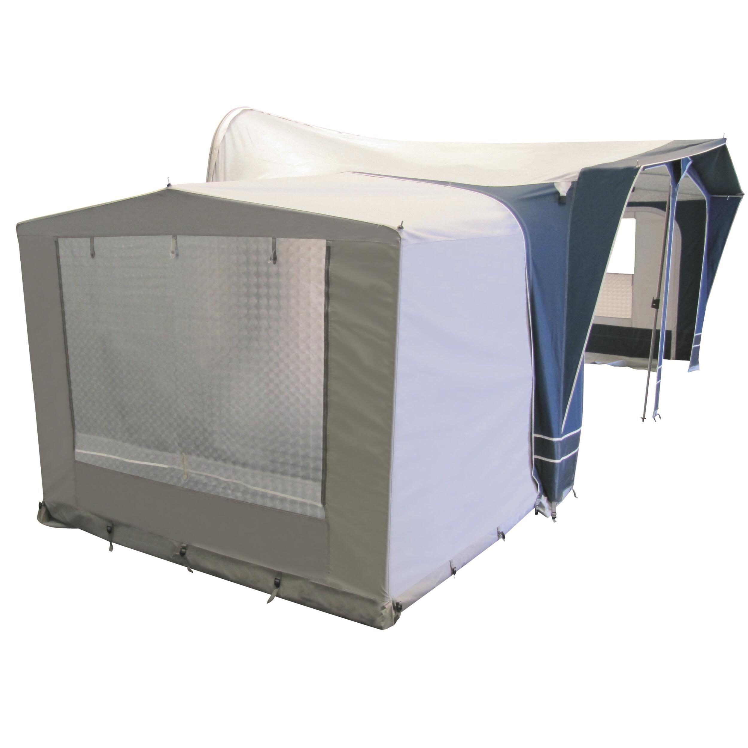 Pièce supplémentaire pour agrandir l'espace sous votre auvent. Peut être utilisée en coin cuisine, espace de rangement, ou encore en coin nuit grâce à la chambre Réf. 850405 à ajouter en option.