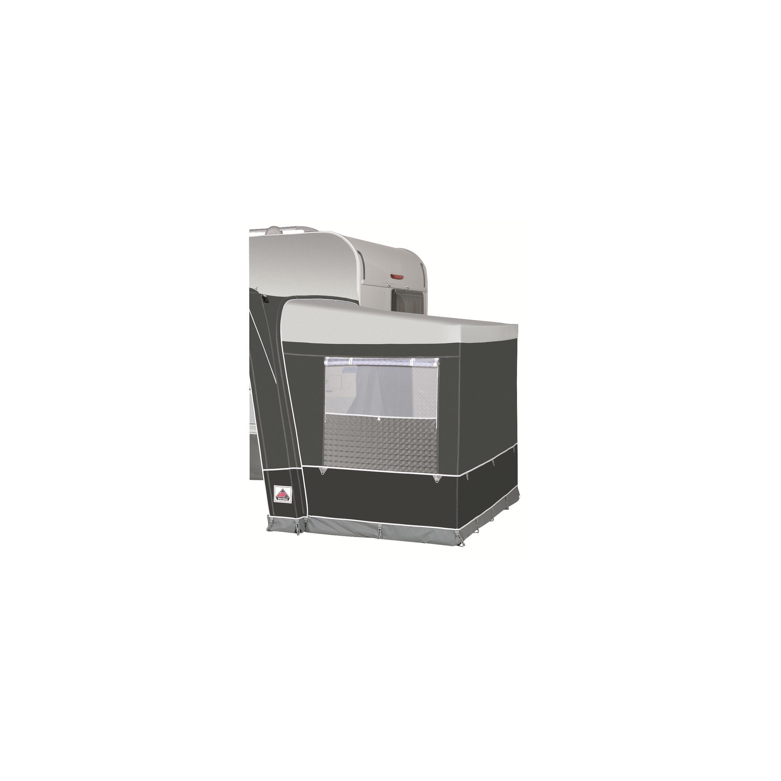 Cette annexe est compatible avec les auvents President 250, President XL280 Deluxe, President XL300 et Royal 350 Deluxe. Elle s'installe sur l'un des côtés latéraux après dézippage du panneau correspondant.