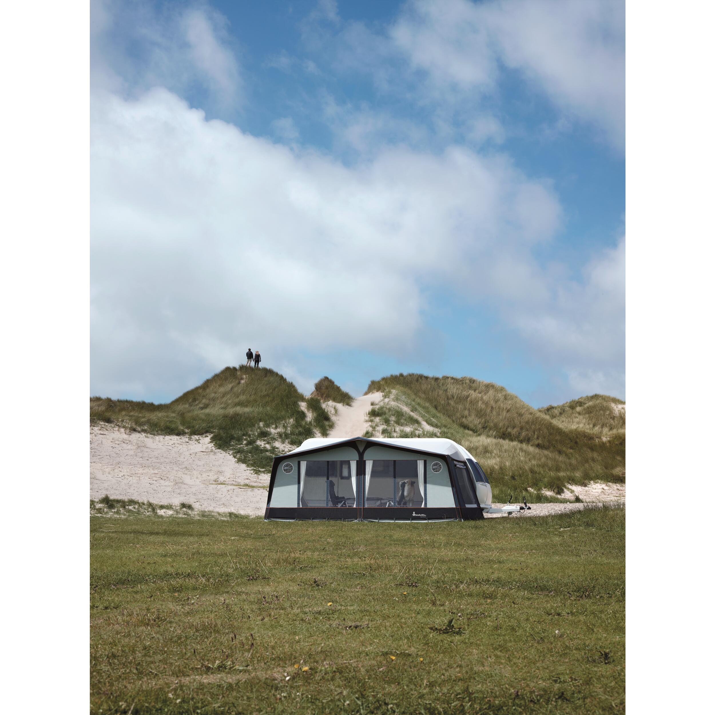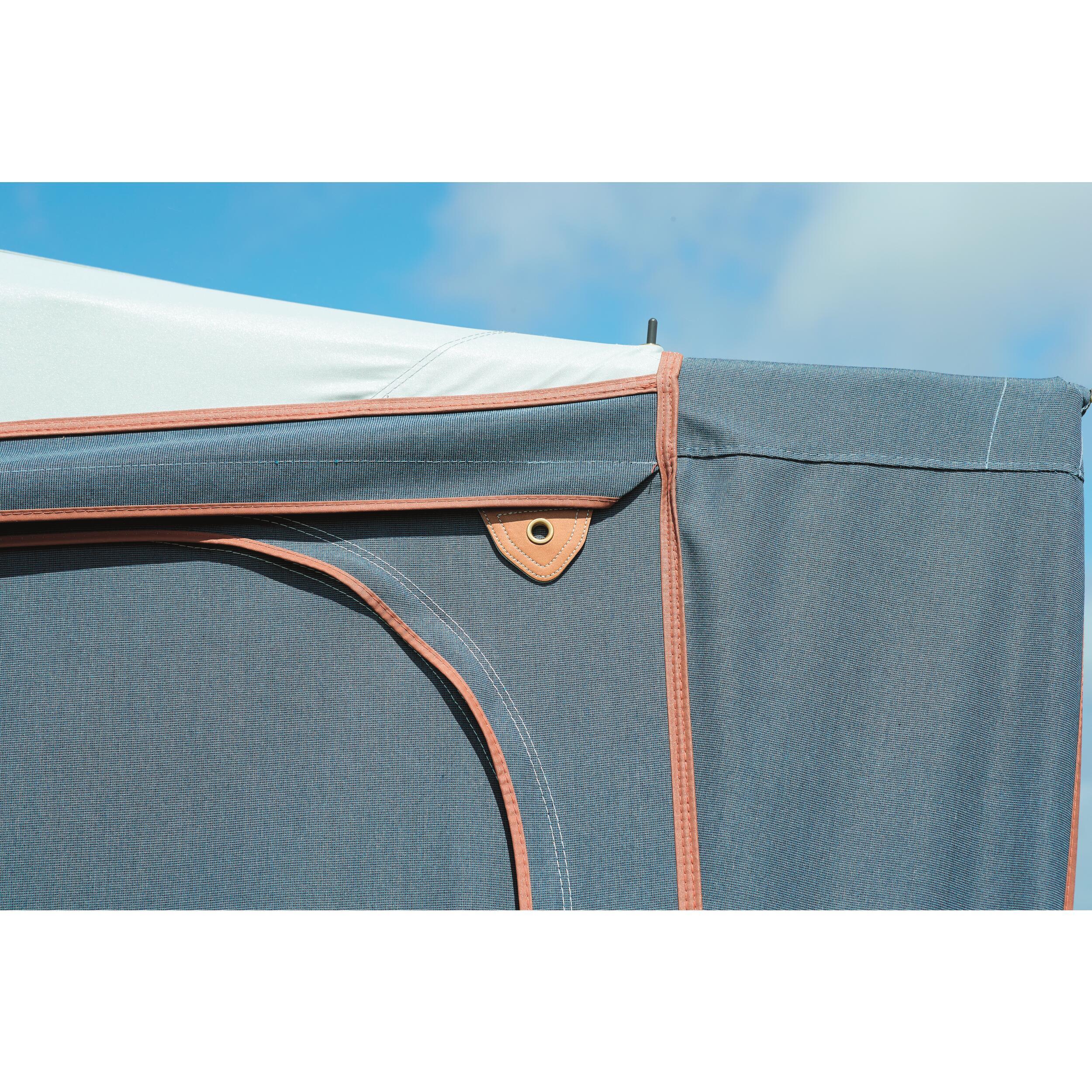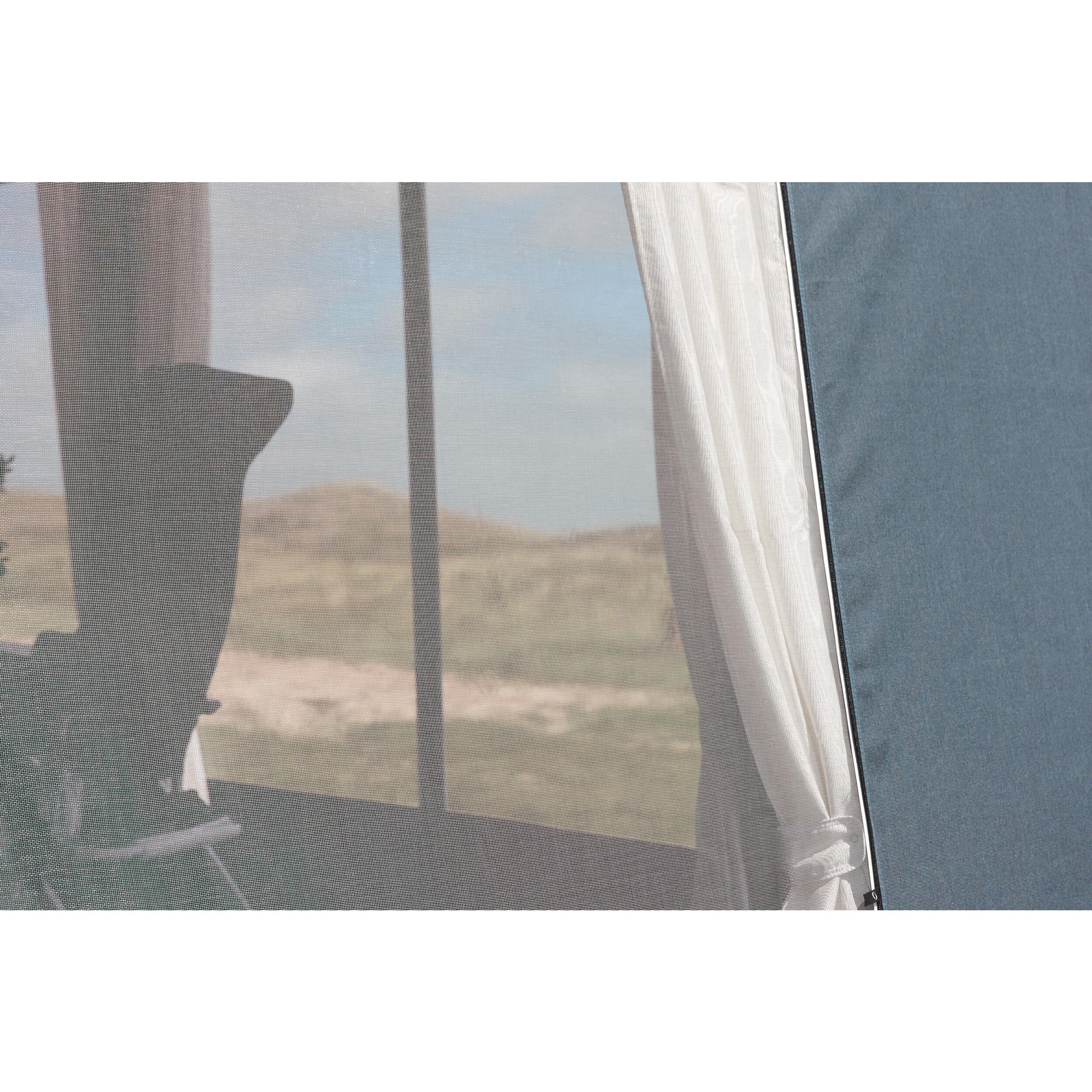 Murs détachables. Moustiquaire sur chaque côté avec volet en PVC cristal teinté pour réduire les effets des rayons du soleil.
