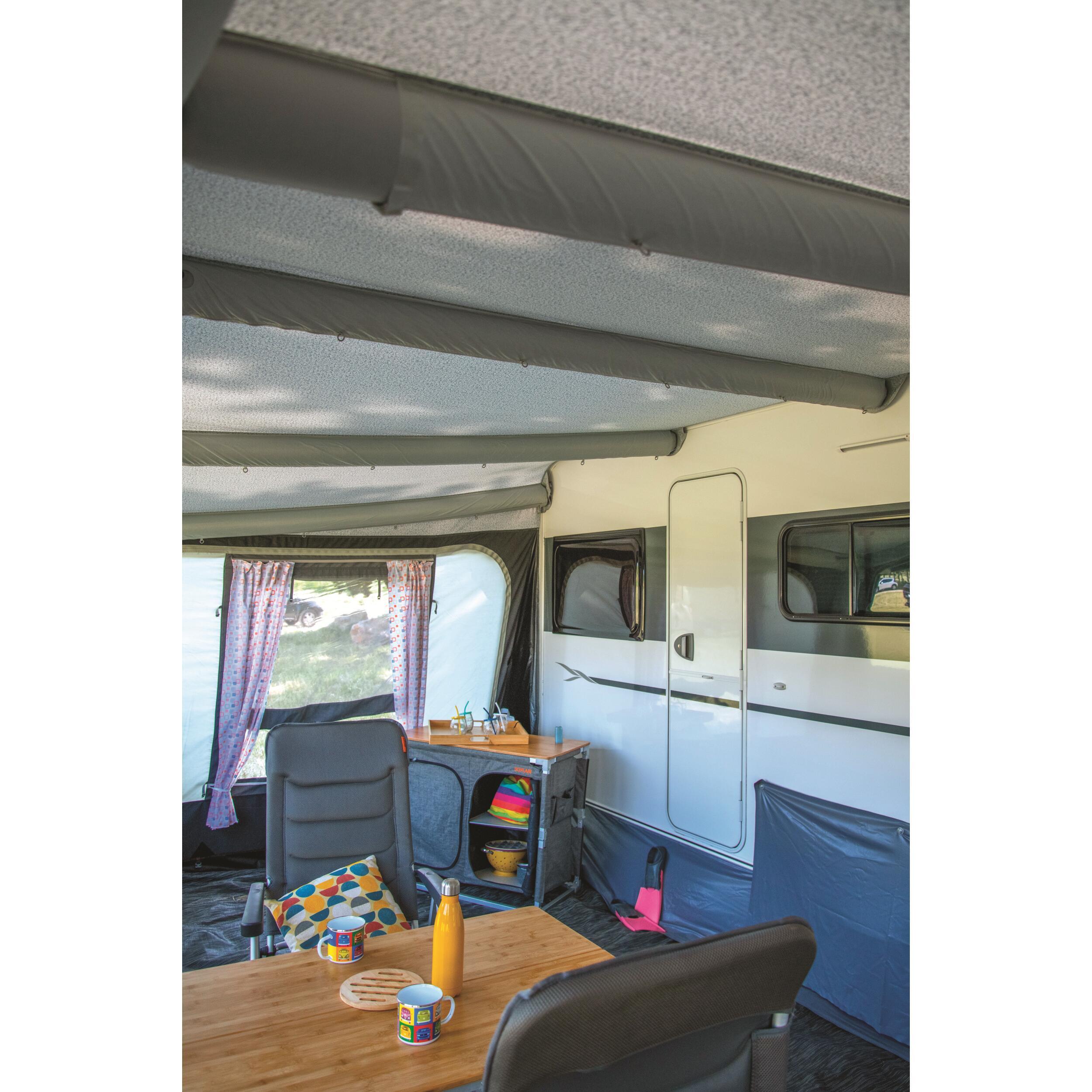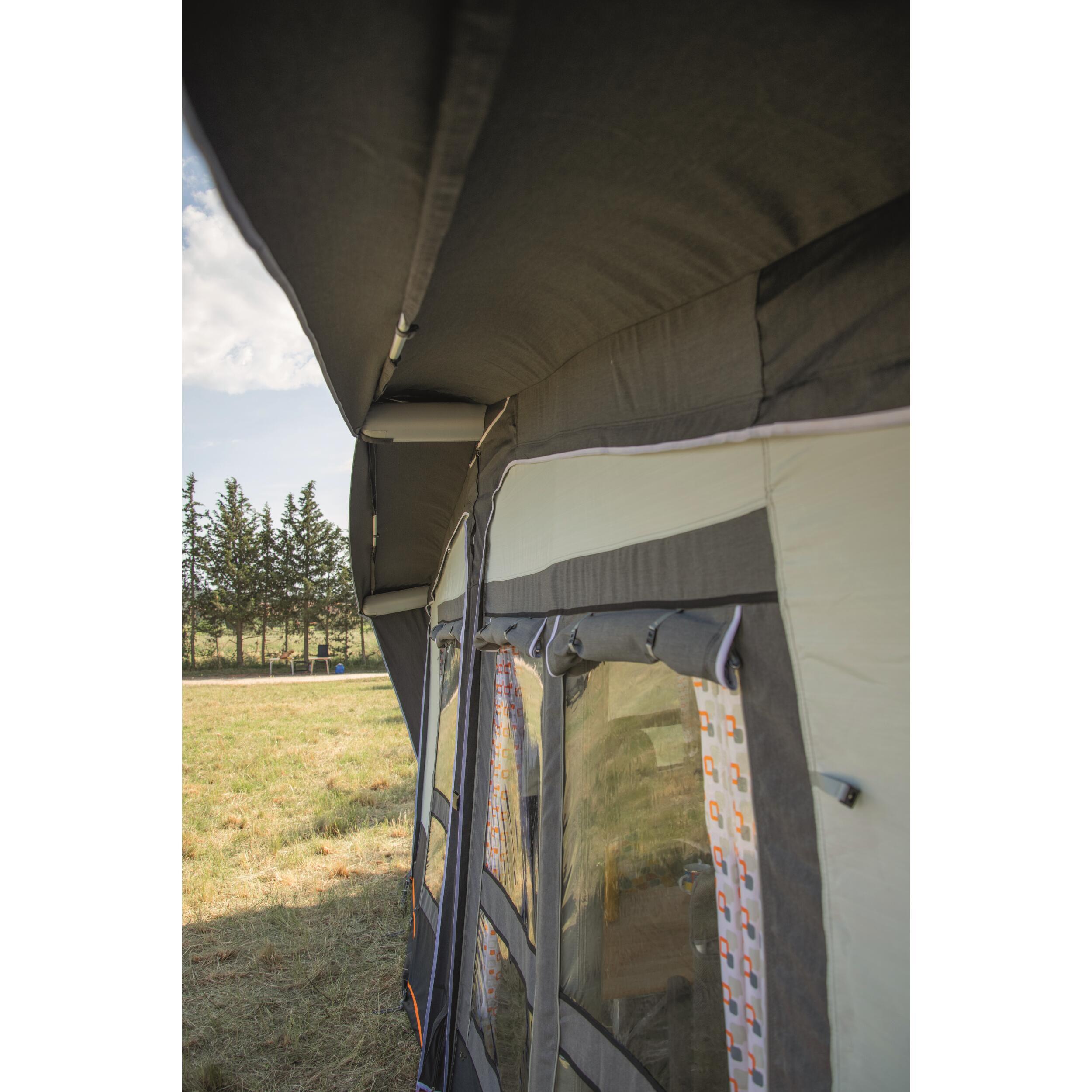 Facile et rapide à installer : Insérez-le dans le rail de votre caravane et gonflez l'entièreté de la structure en 1 seul point.