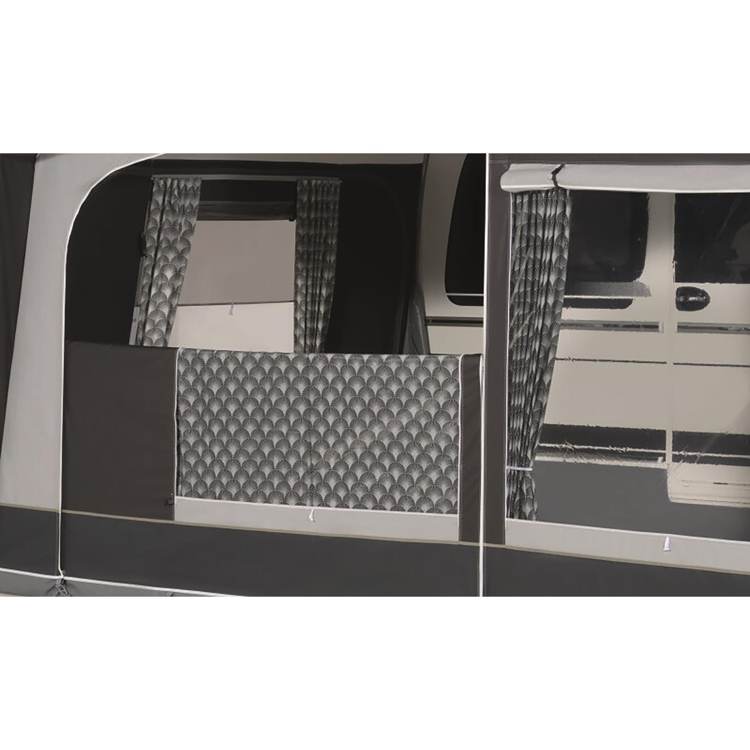 L’intérieur de l’auvent est lumineux et aéré, grâce à ses fenêtres panoramiques équipées de rideaux occultants. Que vous souhaitiez préserver votre intimité ou simplement réguler la lumière, cet auvent s’adapte à vos besoins. Son système de ventilation intégré limite la condensation et garantit un climat intérieur agréable, même par temps chaud.