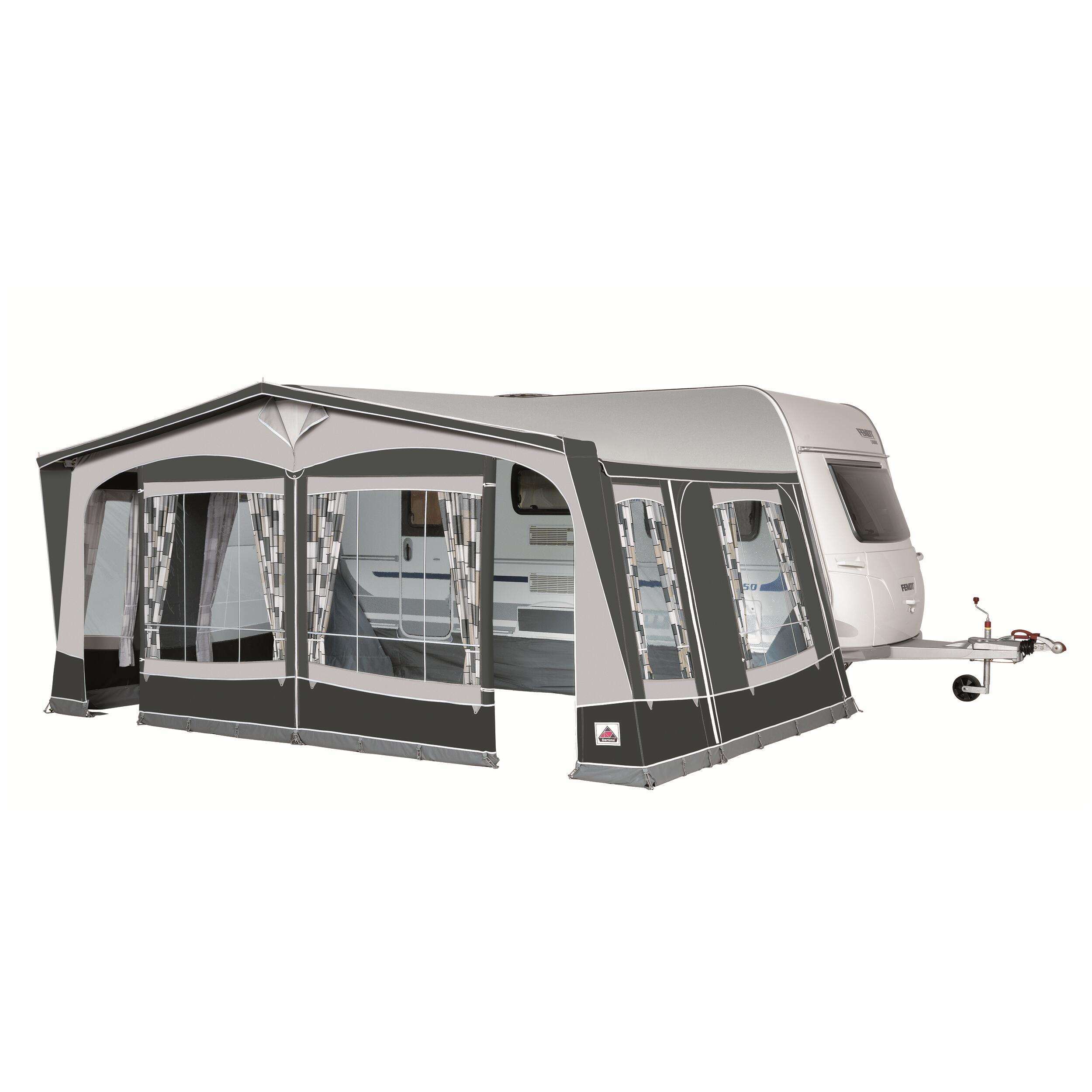 Murs détachables : 1 côté avec 2 fenêtres en PVC cristal, 1 côté avec 1 fenêtre cristal pleine et 1 fenêtre cristal + moustiquaire.