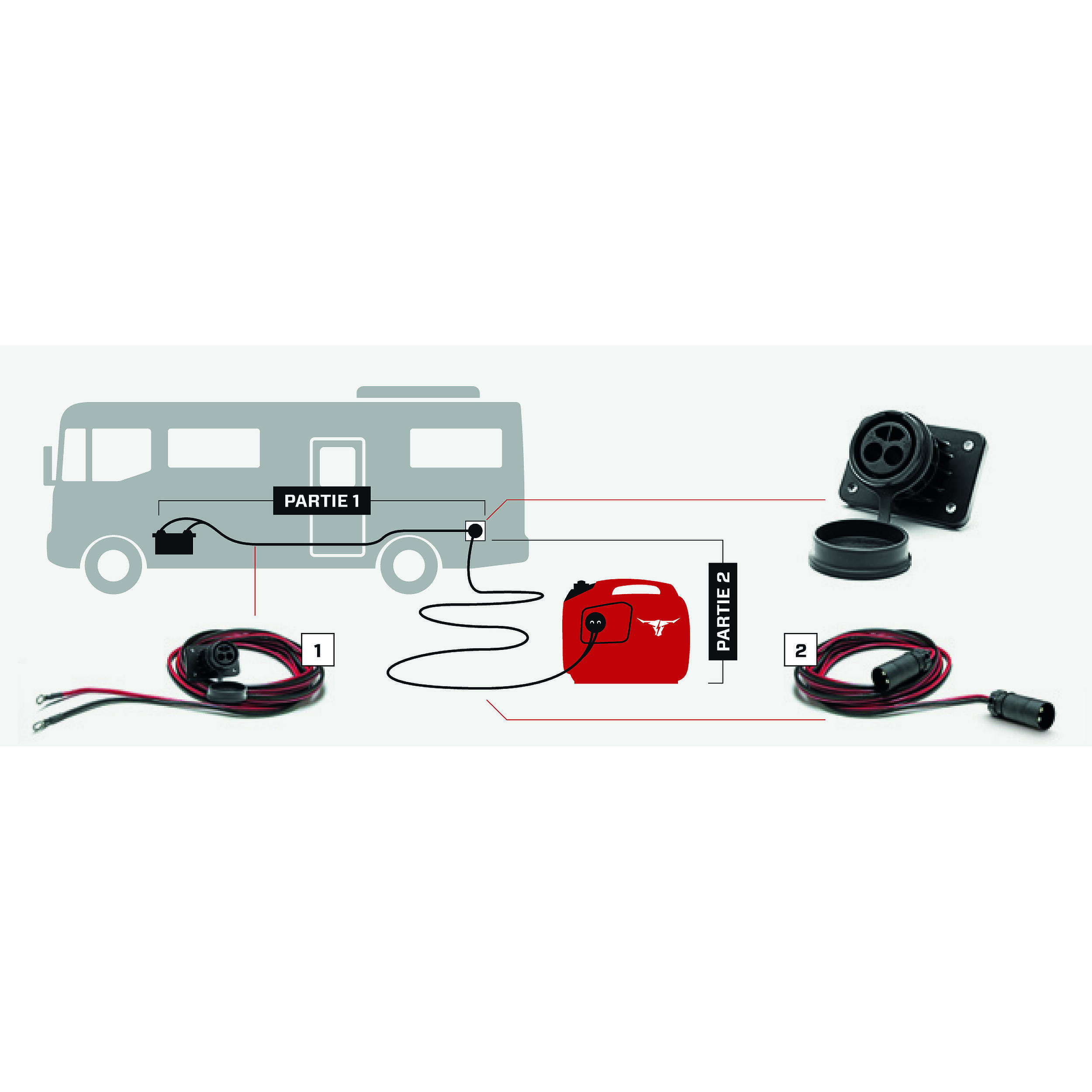 Oui, la prise murale peut être montée aussi bien à l'intérieur qu'à l'extérieur du véhicule, selon vos besoins et votre configuration. Un kit de montage est disponible séparément.