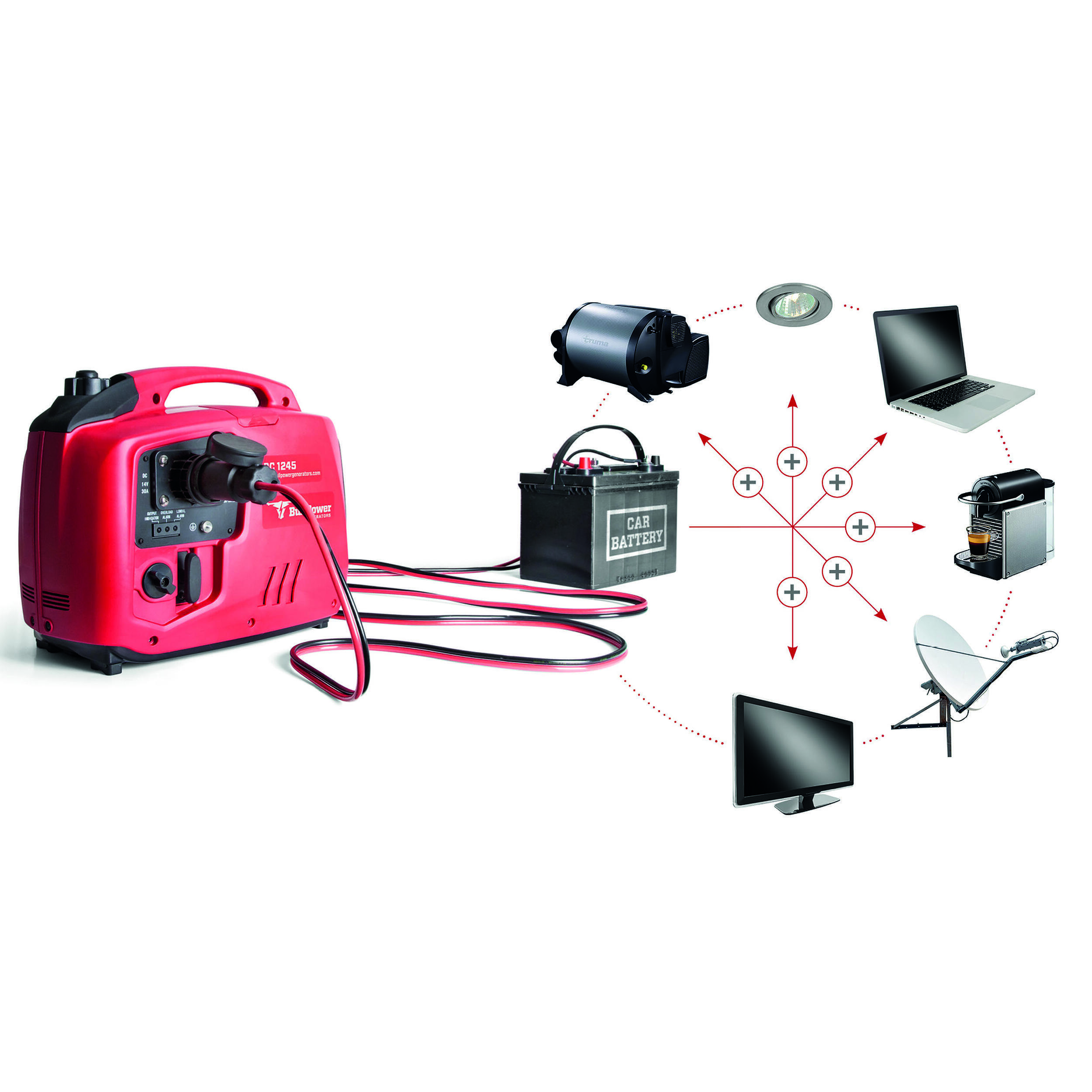 Avec un réservoir de 2,98 litres, le DC1245 offre une autonomie allant de 5h30 à 11 heures selon l’intensité de la charge, ce qui vous permet de couvrir plusieurs cycles de recharge sans avoir à refaire le plein. Son niveau sonore, limité à 53 dBa, en fait l’un des générateurs les plus discrets du marché, évitant les nuisances sonores pour vous et votre entourage. Compact (463 x 381 x 316 mm) et léger (13,8 kg), il se range facilement dans votre coffre ou votre soute, et peut être transféré d’un véhicule à l’autre sans effort. Son démarrage manuel, simple et fiable, vous assure une mise en route rapide, même par temps froid.