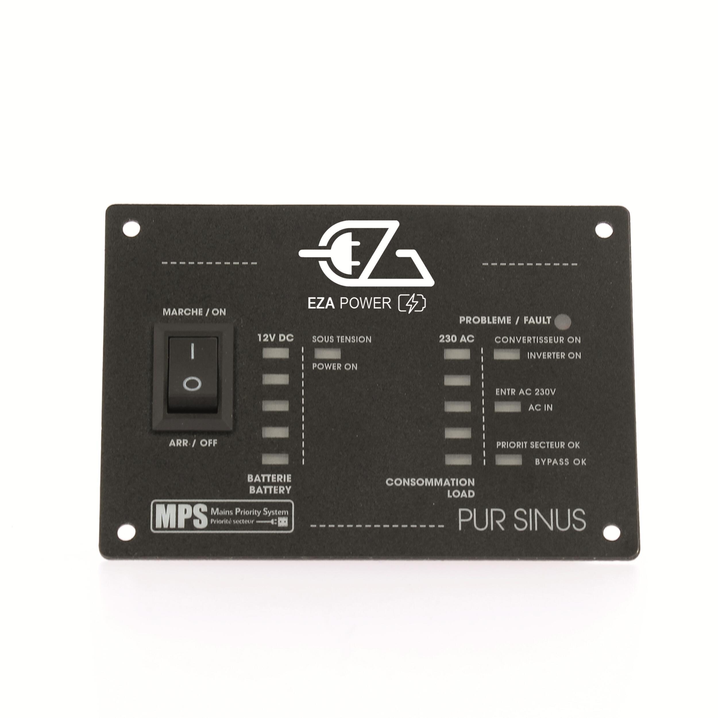 Convertisseur intelligent : Grâce au système MPS (Fonction priorité secteur) les convertisseurs 1000W, 2000W et 3000W basculent automatiquement lorsque le véhicule se raccorde au réseau 220V (Exemples : aire de stationnement, camping, à la maison…) pour économiser la batterie auxiliaire. Lorsque le véhicule se déconnecte du réseau le convertisseur bascule à nouveau sur la batterie en quelques millisecondes pour continuer à alimenter le consommateur électrique.