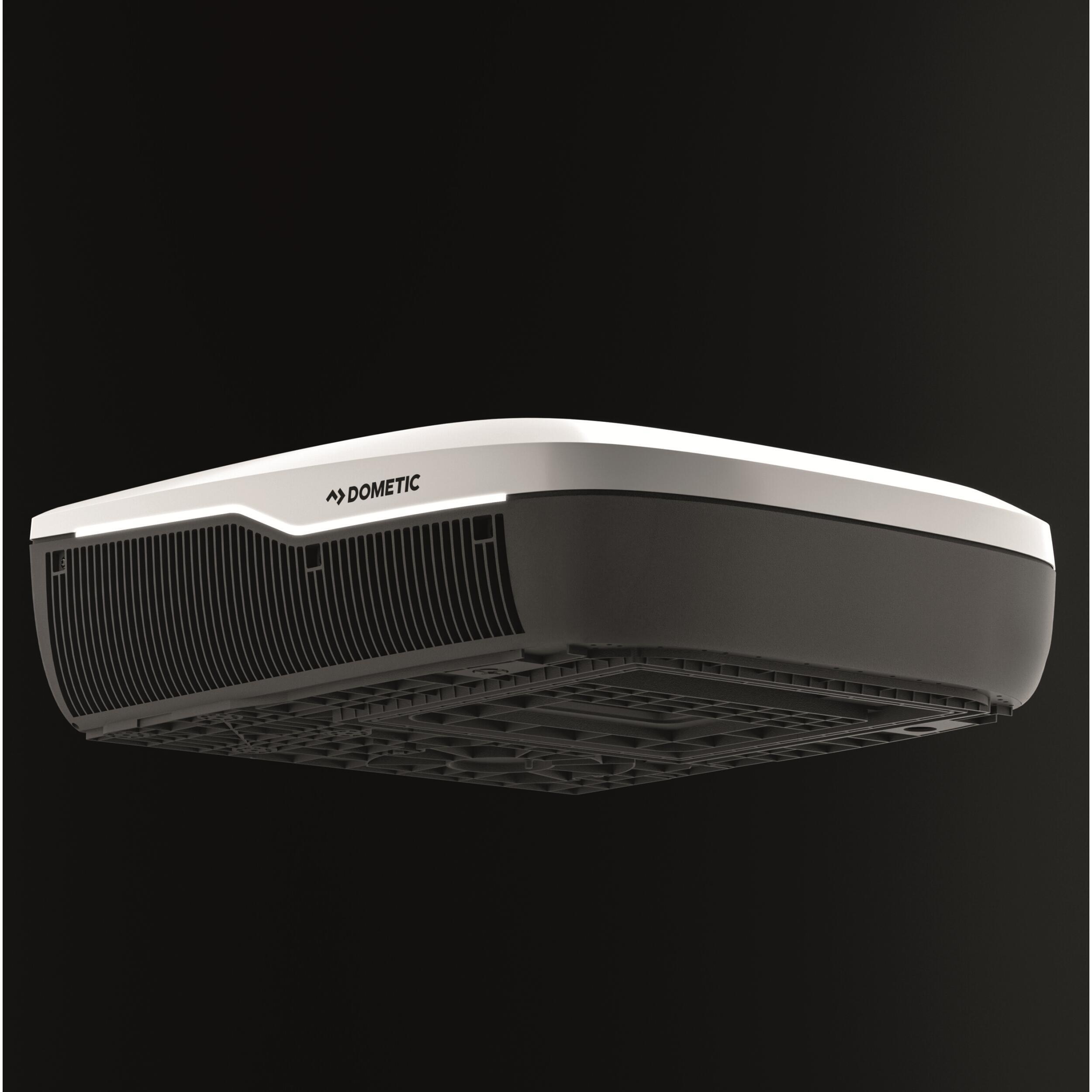 Climatiseur de toit FJX7 de Dometic, parmi les plus puissants, avec courbe d’éclairage LED, pompe à chaleur et compresseur inverter pour une efficacité maximale.