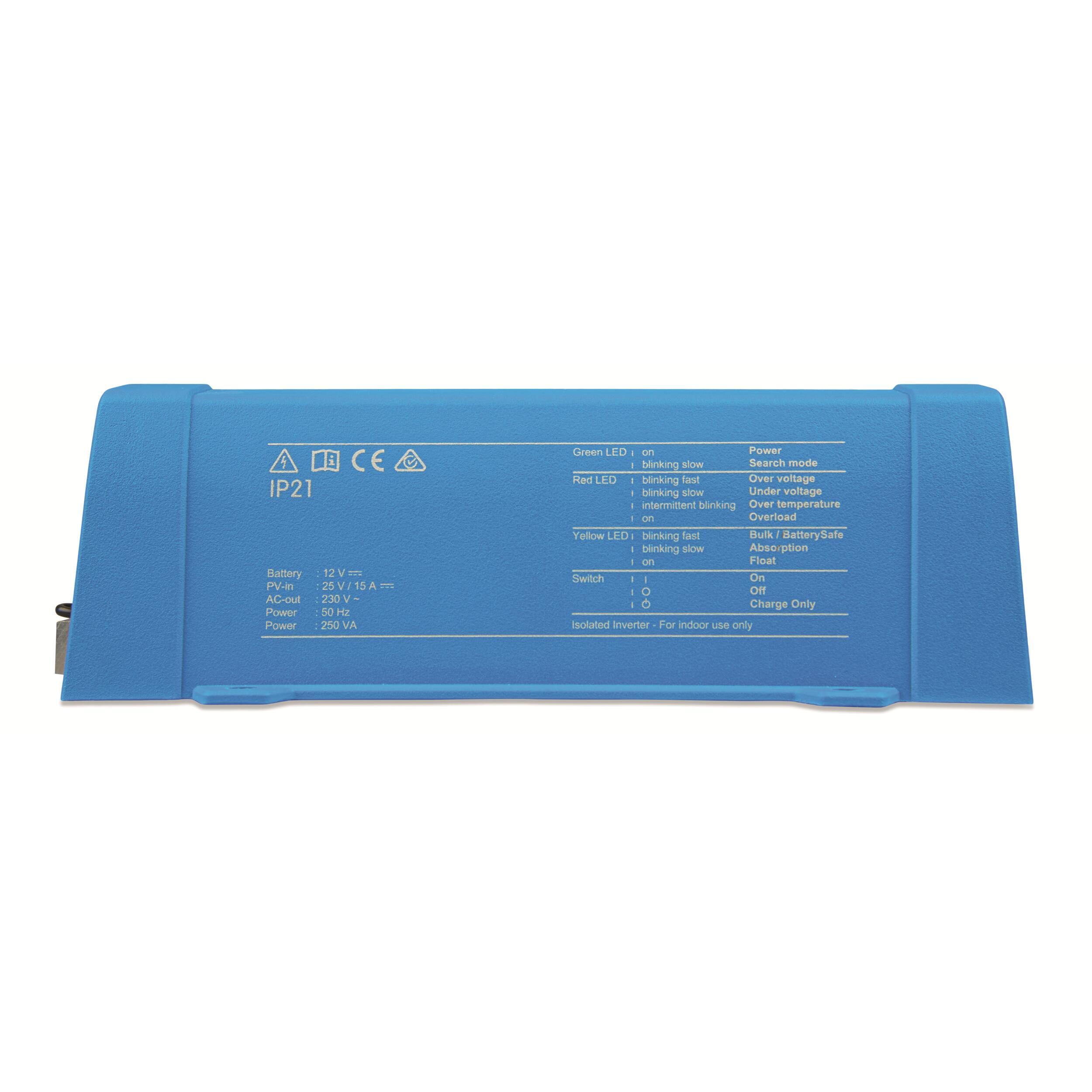 Optimisez votre système d'énergie solaire avec l'onduleur solaire 12/250-15 IEC de Victron : un combo onduleur sinusoïdal et chargeur solaire, facile à installer et programmable.