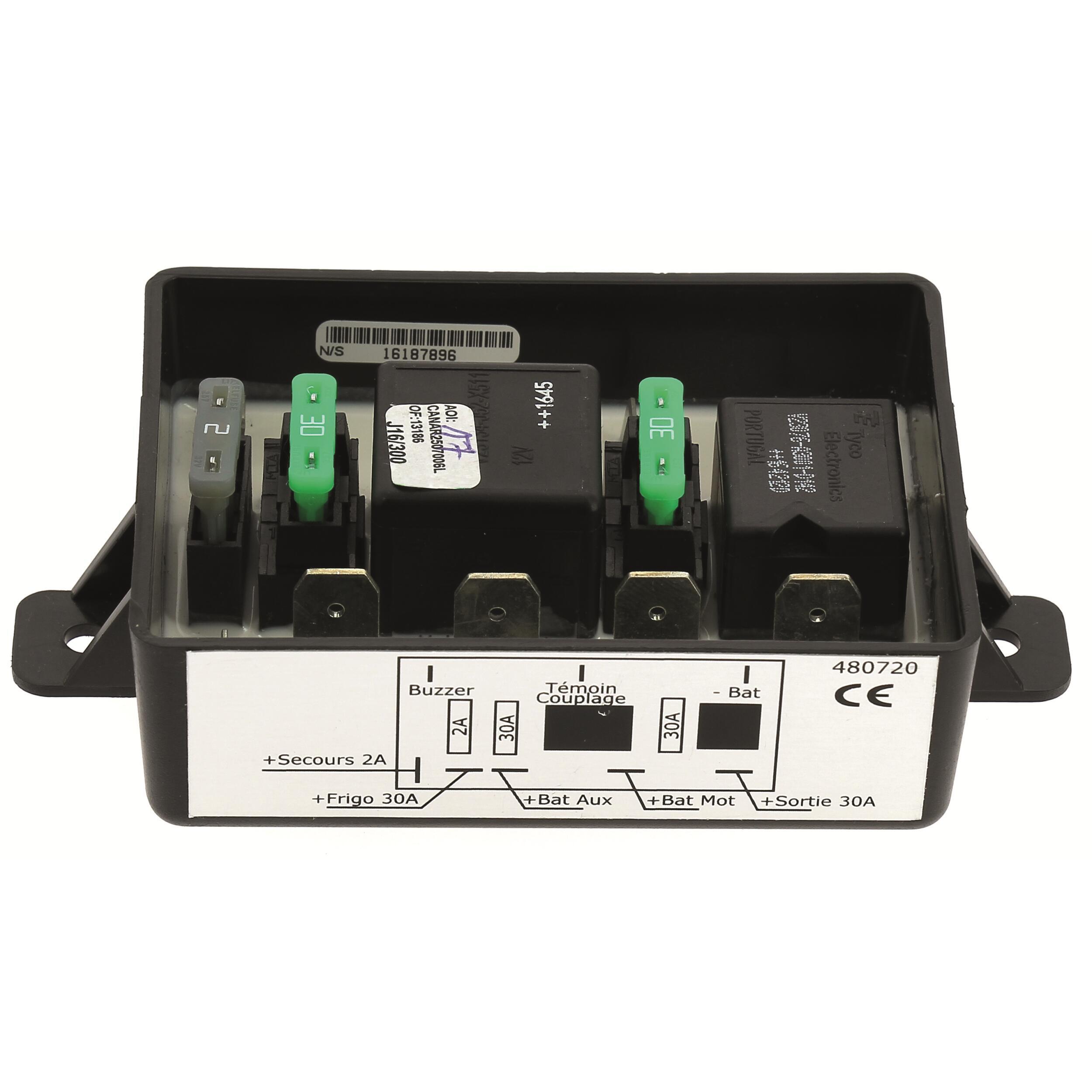 Assure le couplage des batteries : principale (batterie de démarrage) et auxiliaire (batterie de service).