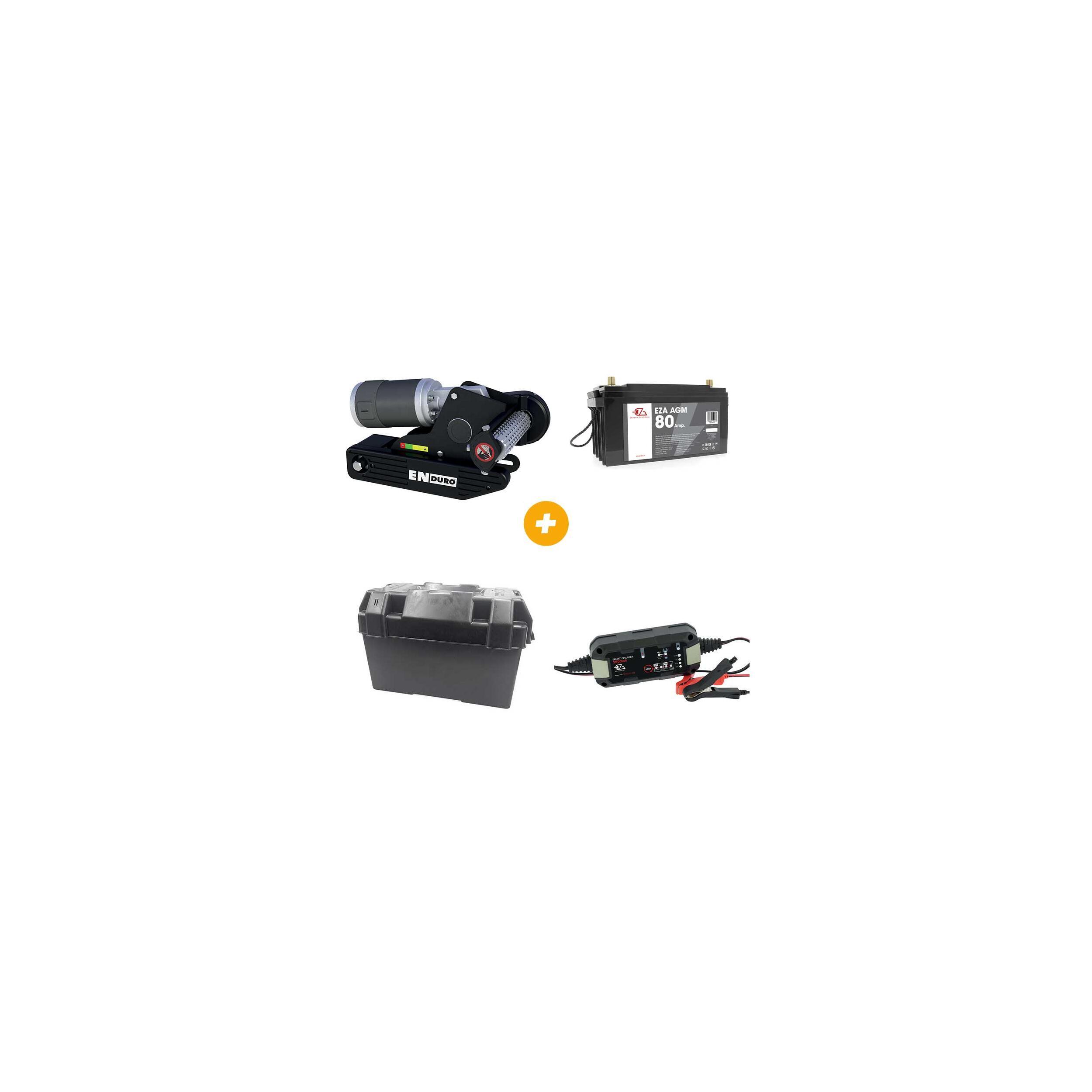 Pack deplace caravane + Batterie AGM + Bac à Batterie + Chargeur