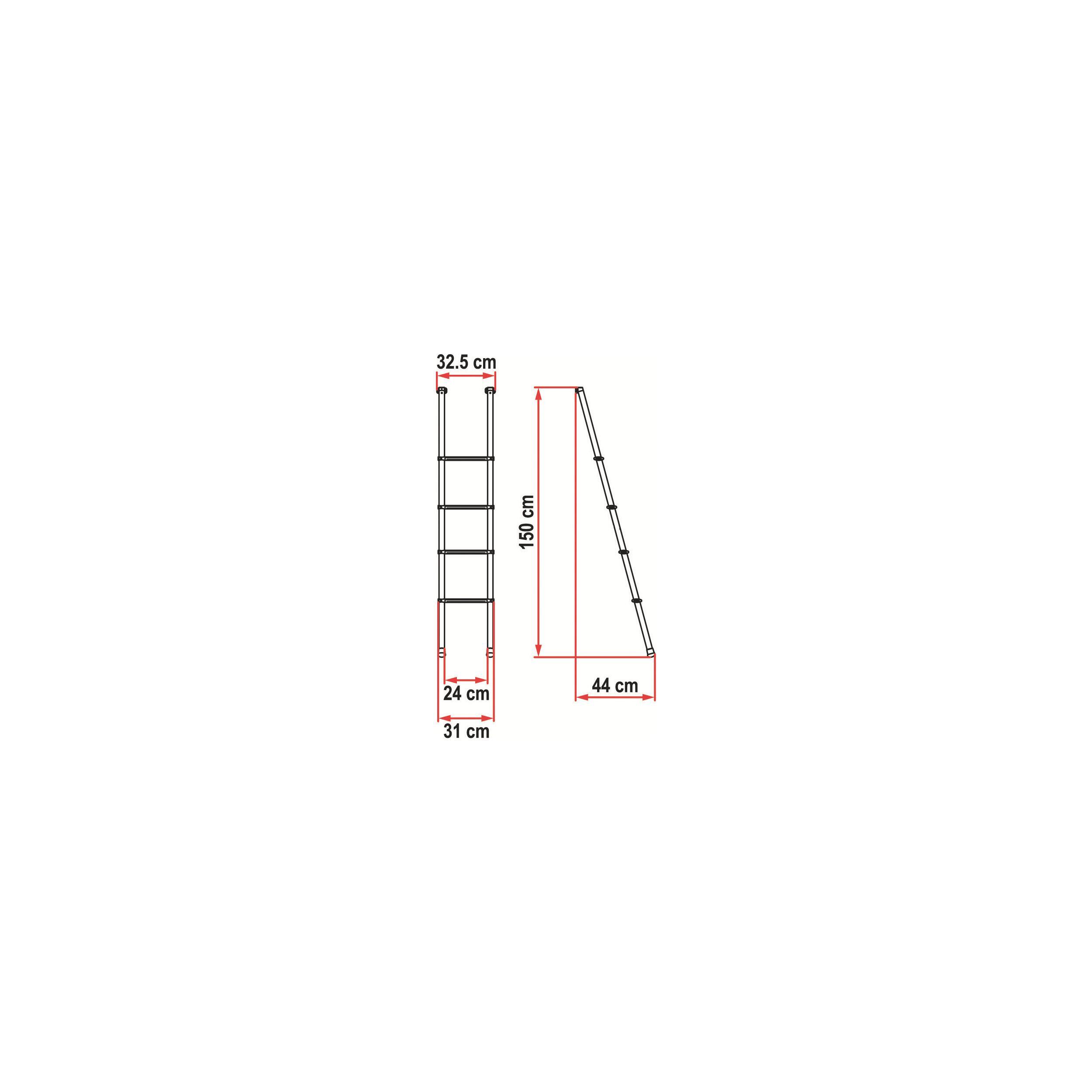 Echelle en aluminium anodisé (légère inclinaison de 15°) pour l'accès aux couchettes des camping-cars et caravanes. Crochets supérieurs en nylon très pratiques.