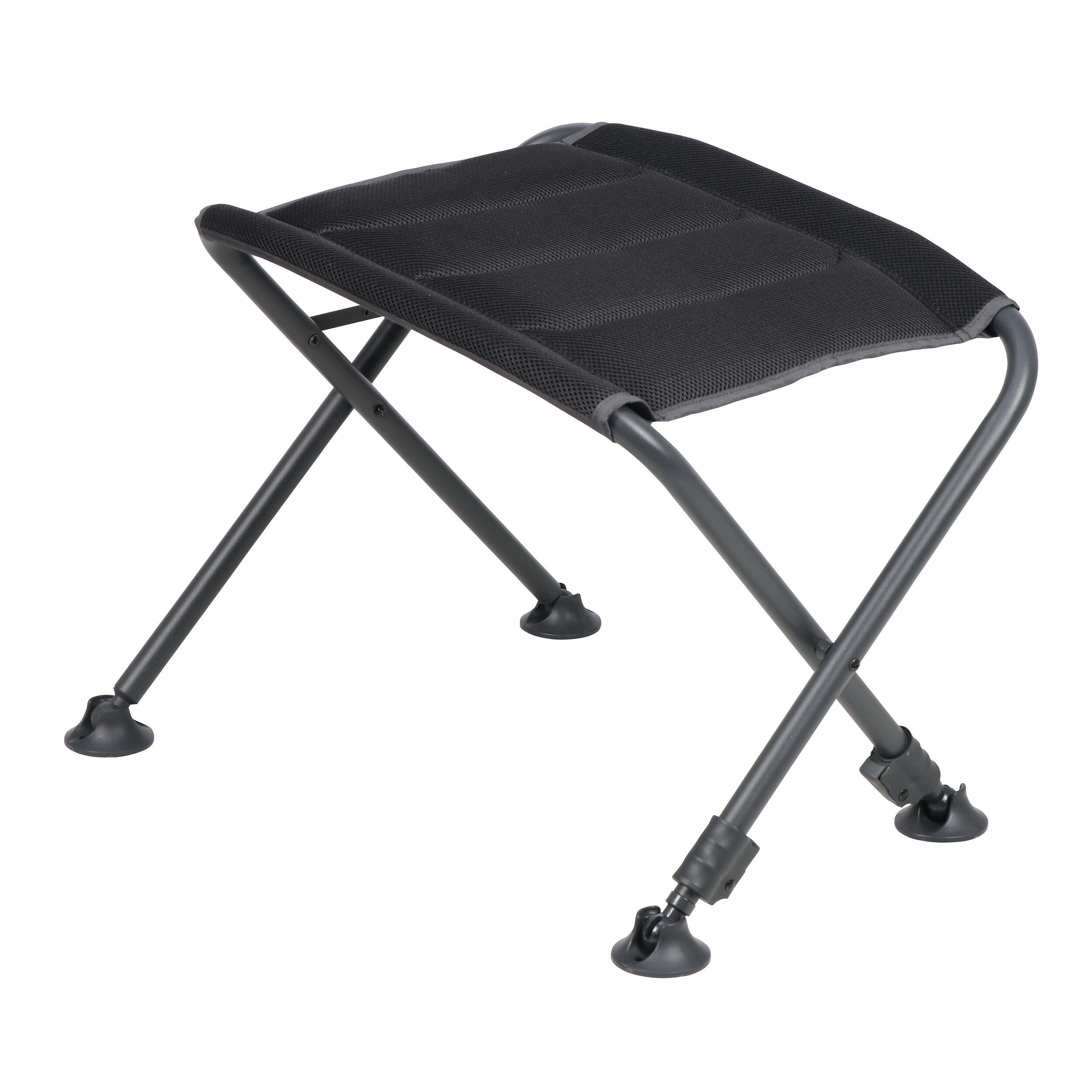 Repose-jambes Sereno SOPLAIR avec armature en aluminium, toile intérieure 2D Mesh polyester, coloris noir et gris, charge maximale de 80 kg.