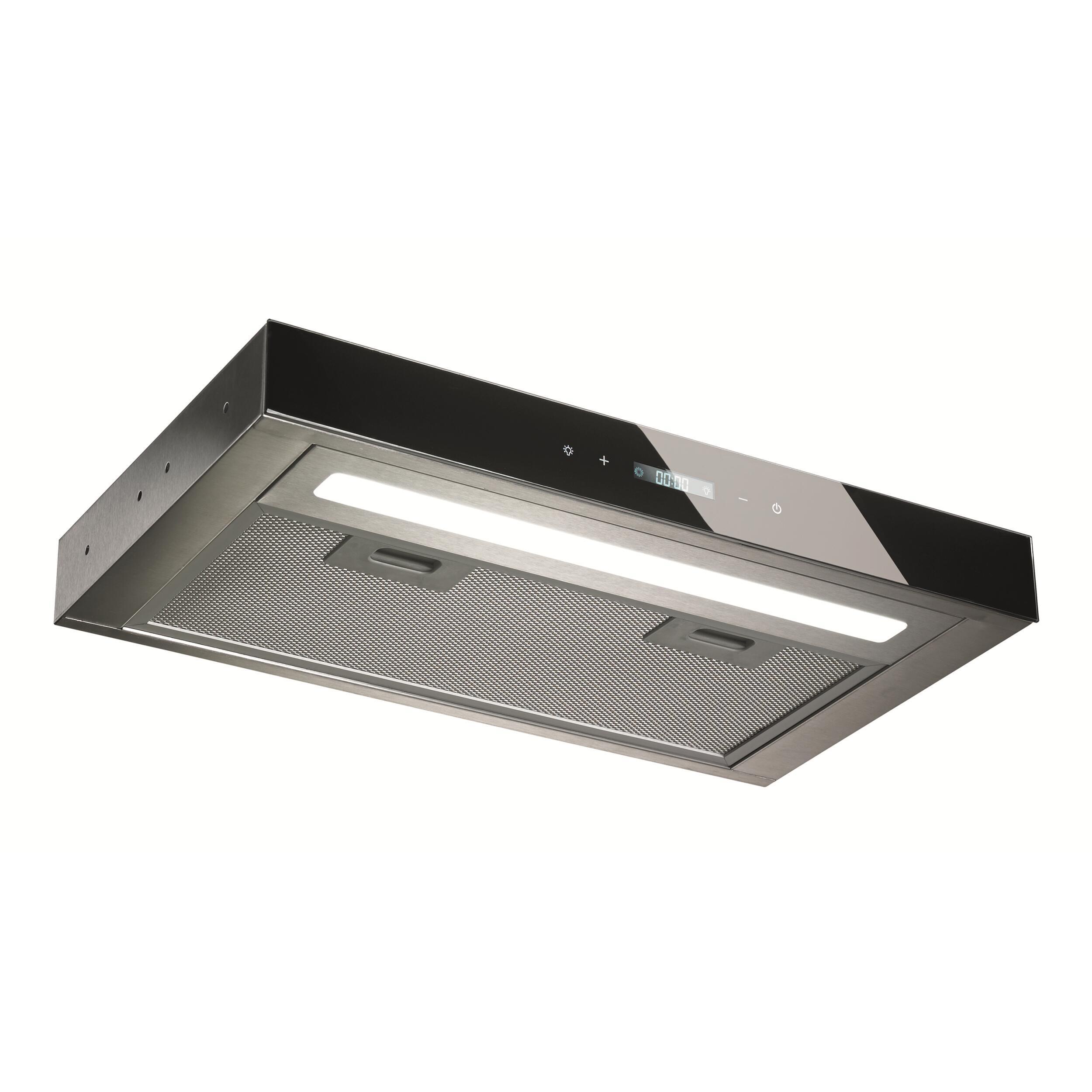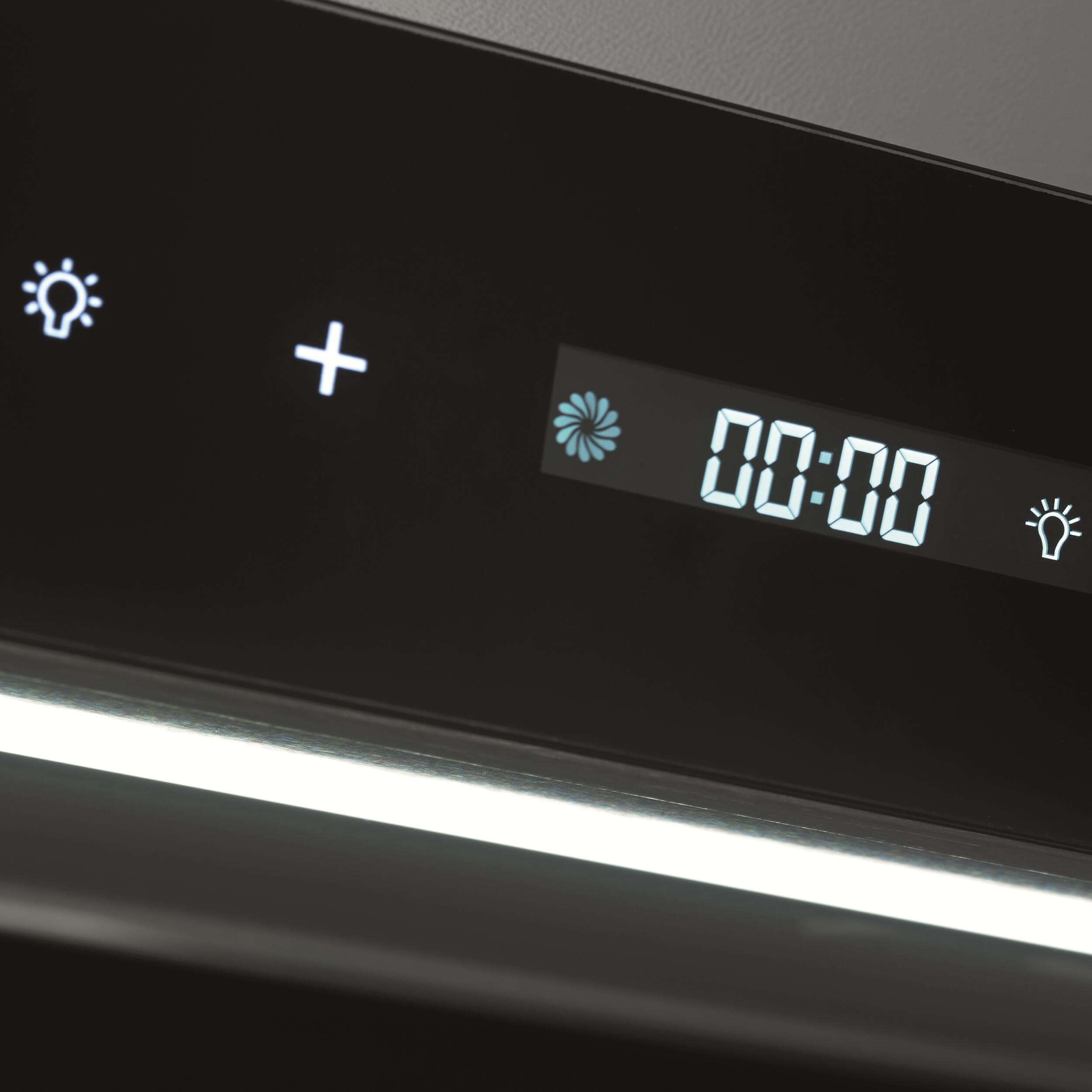 Hotte à extraction (évacuation de l'air à l'extérieur) avec commande tactile et leds. Une pression du bout du doigt sur le panneau de commande suffit pour régler la vitesse, l'heure et l'éclairage. Facile à nettoyer. En acier inoxydable avec filtre métallique 5 couches.