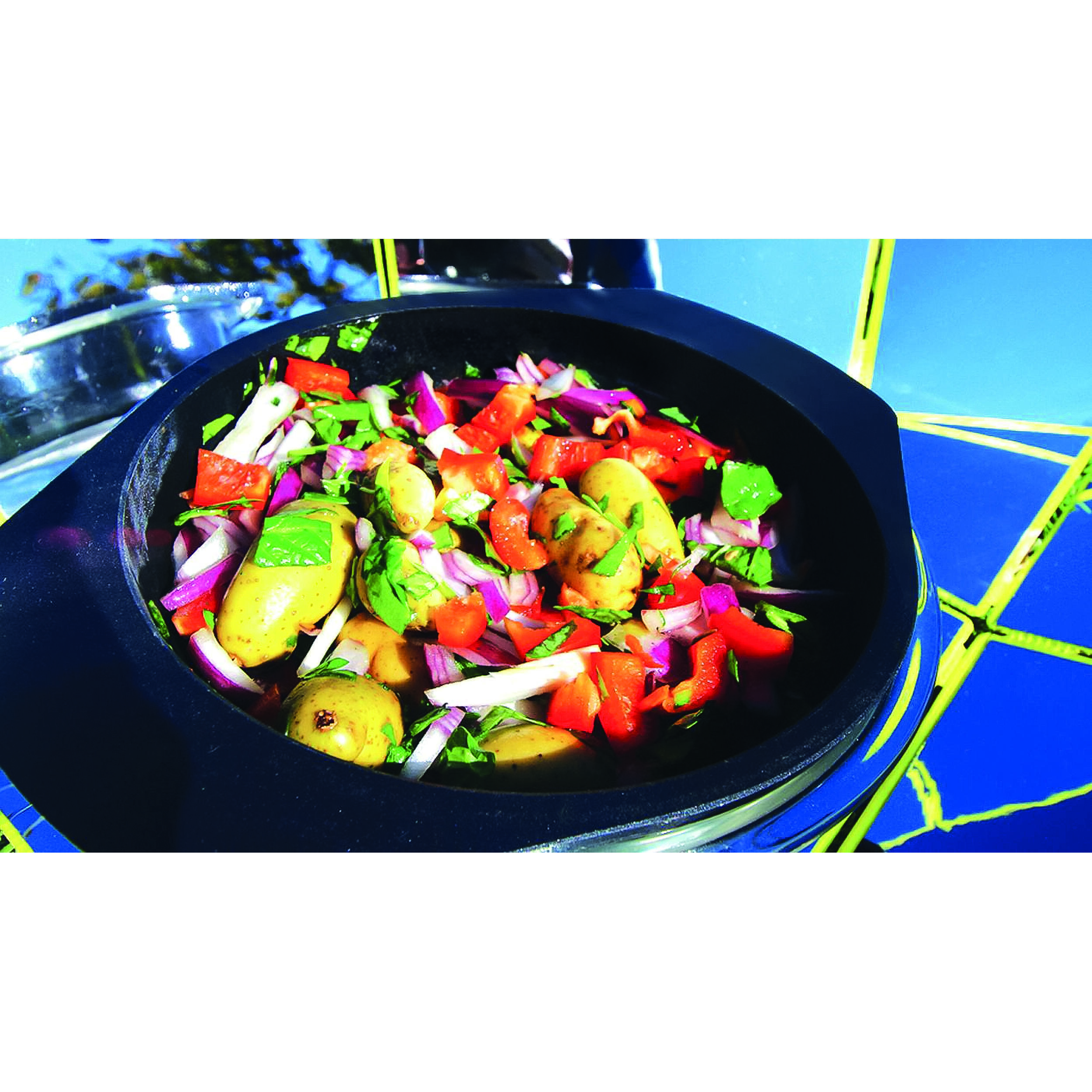 L’acier émaillé résiste aux chocs et aux variations de température, ce qui garantit une longue durée de vie, même en conditions extérieures. Vous pouvez la laver au lave-vaisselle ou à la main, sans craindre d’abîmer le revêtement. Son poids léger (0,8 kg) facilite la manipulation, que ce soit pour la sortir du rangement ou la poser sur le cuiseur solaire. Un accessoire fiable, conçu pour accompagner vos voyages pendant des années.