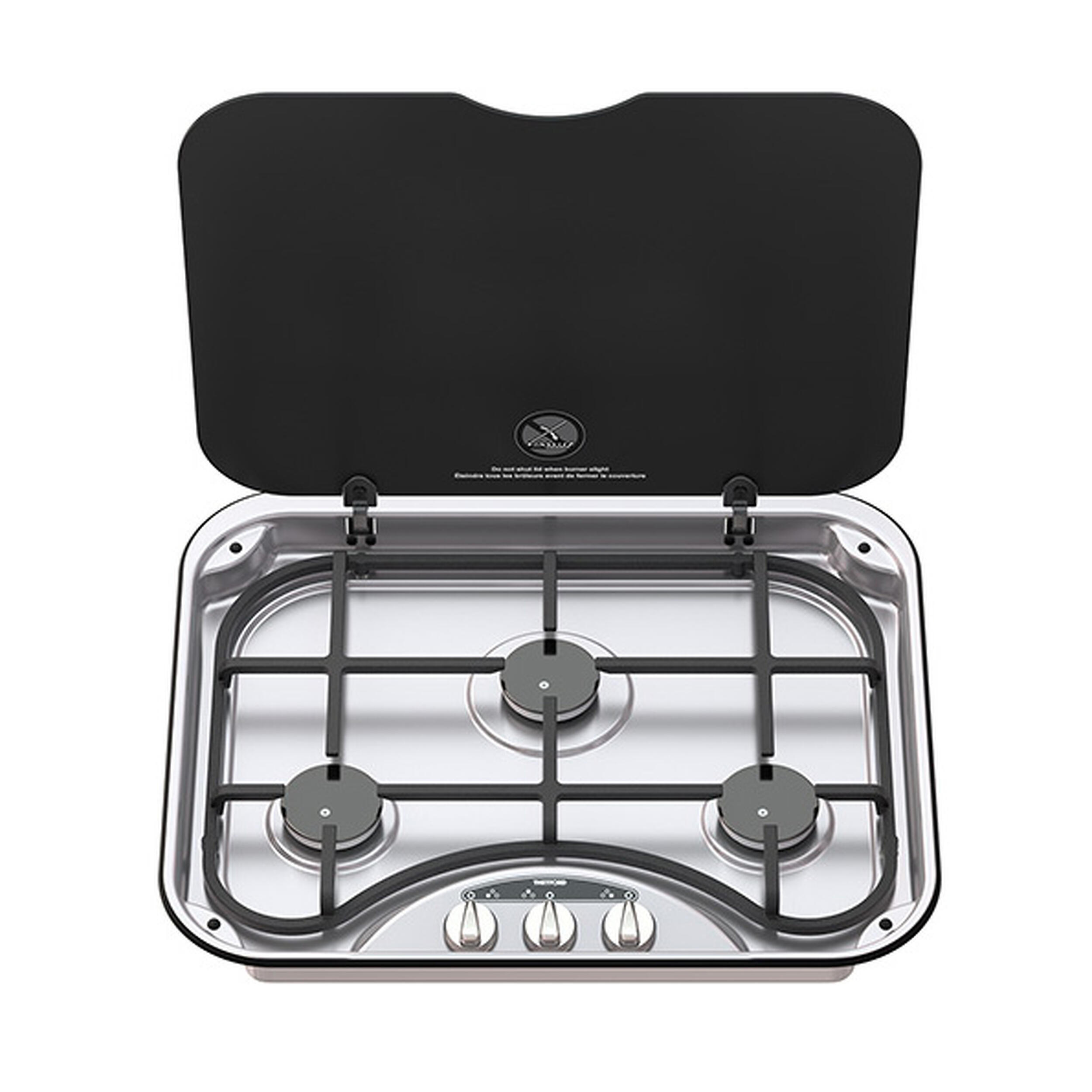 Doté d'une grille de support en fonte ou en chrome, le réchaud basic line 345 présente une élégante conception avec un couvercle en verre, ajoutant ainsi une touche de modernité et de design à votre cuisine aménagée.