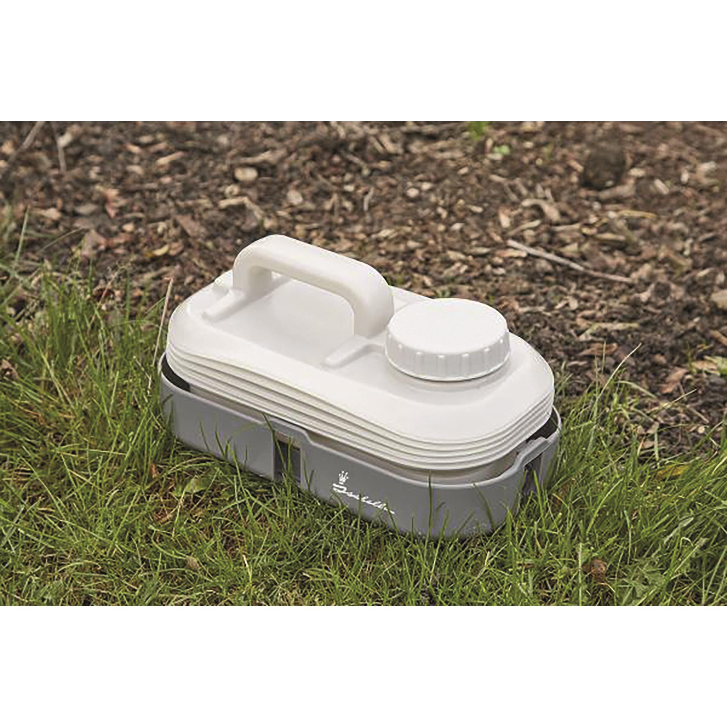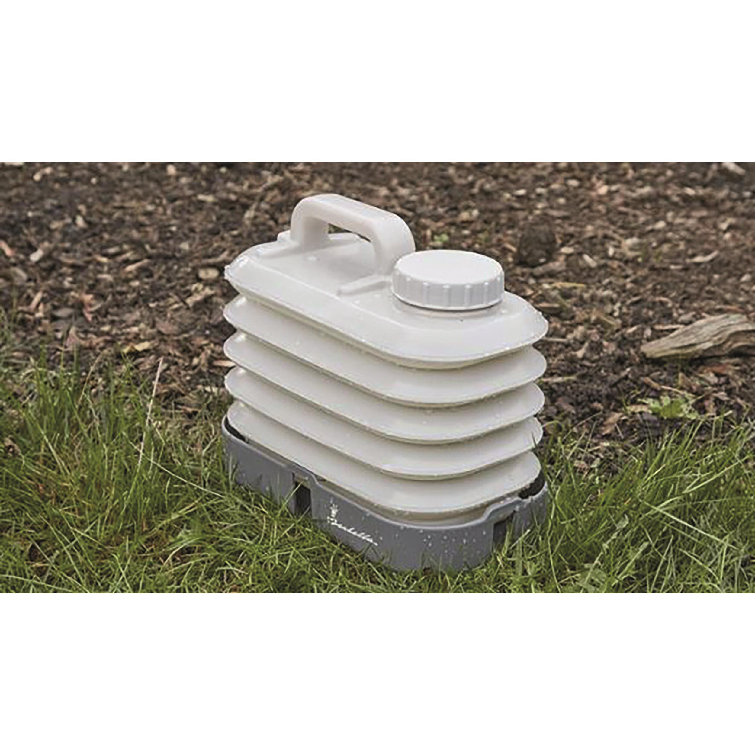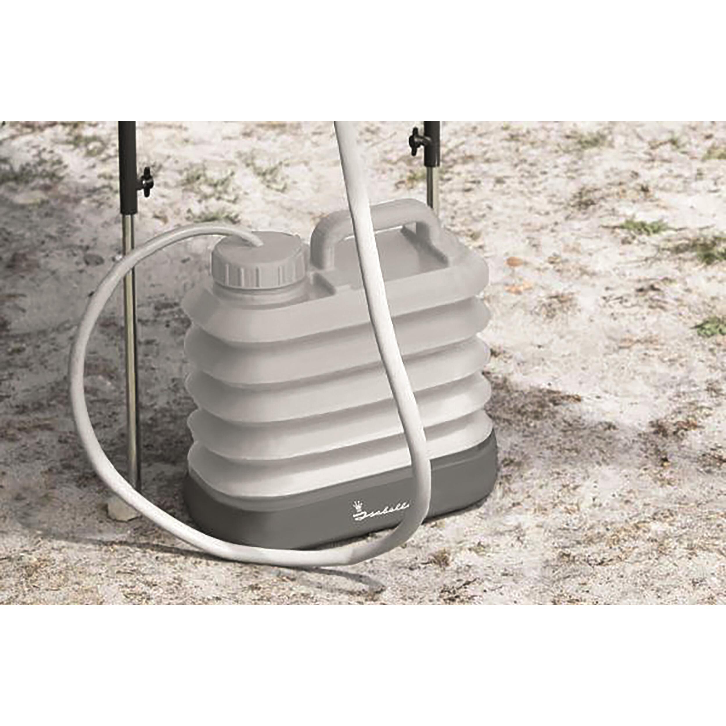 Ce bidon à eau repliable est un must pour la vie en plein air. Utilisez-le par ex. comme réserve d’eau pour la douche, pour la cuisine ou pour épancher votre soif. Vous pouvez sans problème stocker de l’eau potable dans le bidon du fait qu’il est réalisé en plastique de qualité alimentaire.
