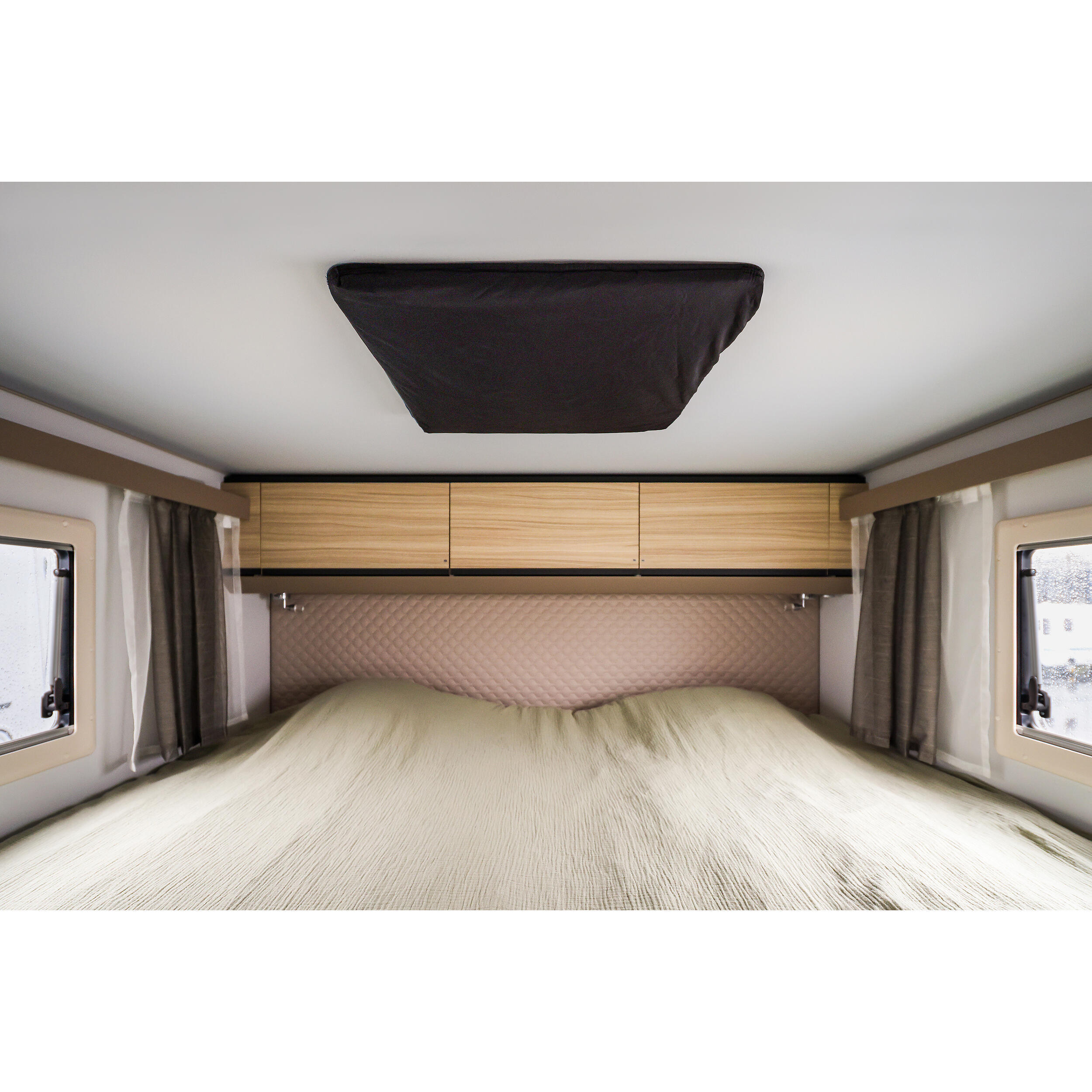 L’occultant Alteraque limite la lumière qui pénètre par le lanterneau. Cette occultation améliore le confort dans l’habitacle, notamment lors des phases de repos ou pendant la nuit.