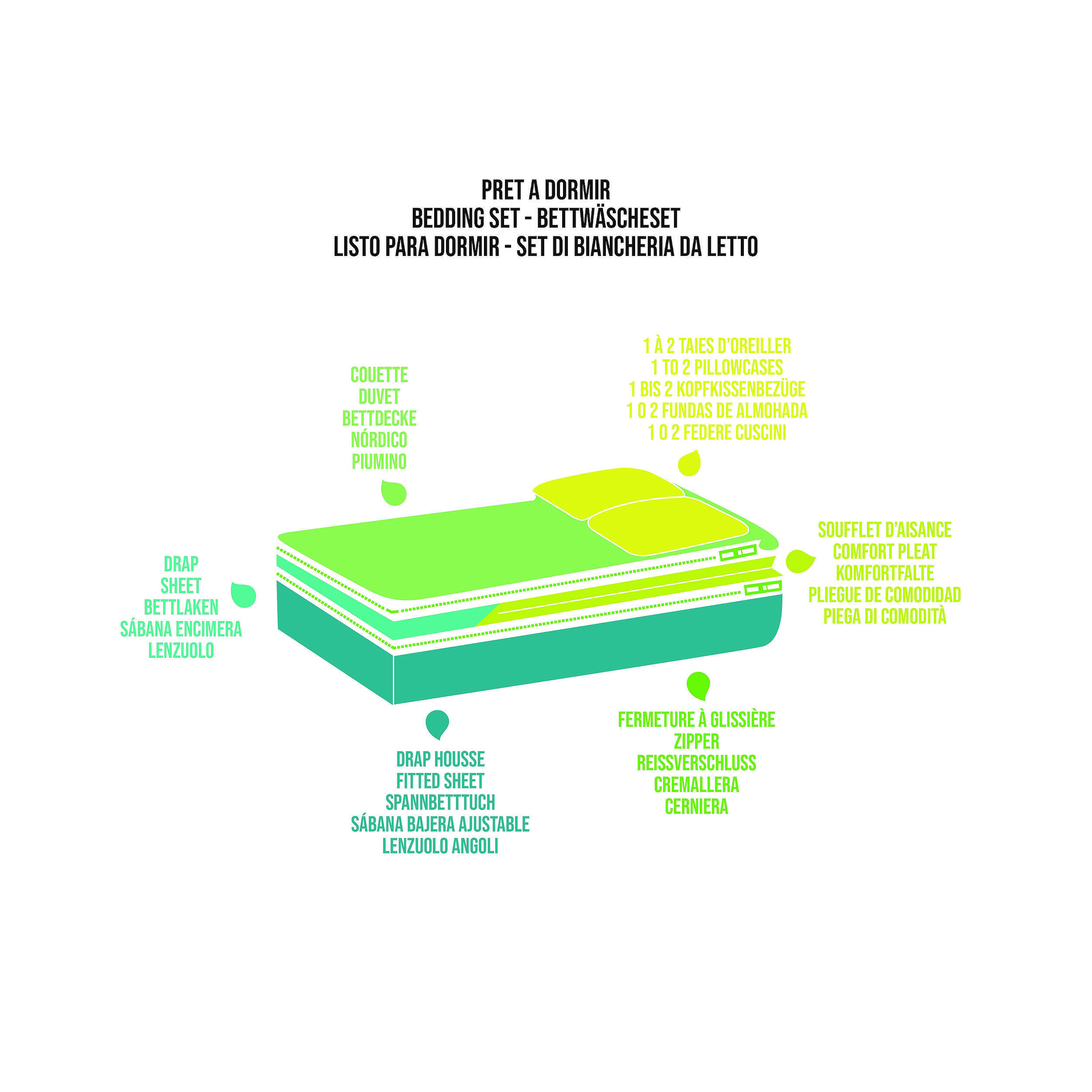 Ce prêt à dormir est un prêt à dormir 2 en 1 : à la fois couette été et couette hiver. Avec ces 2 couettes reliées entre elles par un système de zip, vous en profiterez toute l’année. Vous pouvez ainsi les séparer en fonction de la saison. L’hiver, vous gardez les 2 couettes liées ensemble. L’été, vous détachez l’une des couettes ou les deux s’il fait très chaud.