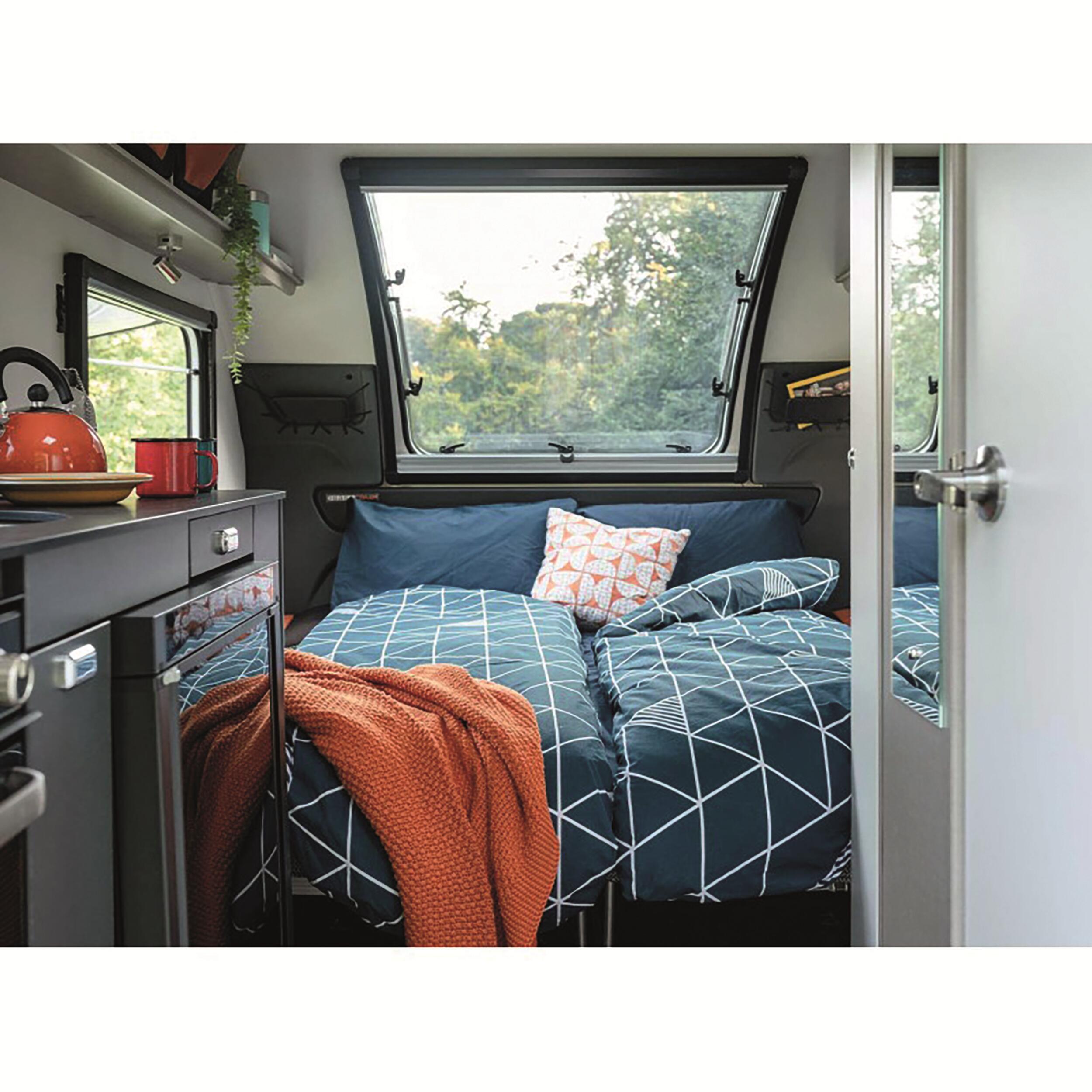 Faire son lit n’a jamais été aussi simple : il suffit de dérouler le couchage Duvalay et le tour est joué. Grâce à son design tout-en-un, il reste en place et s’adapte aussi bien aux lits simples qu’aux lits doubles (en utilisant deux unités). Une fois replié, il ne mesure que 29 cm de diamètre pour 66 cm de largeur, facilitant ainsi le rangement dans les espaces restreints de votre véhicule.