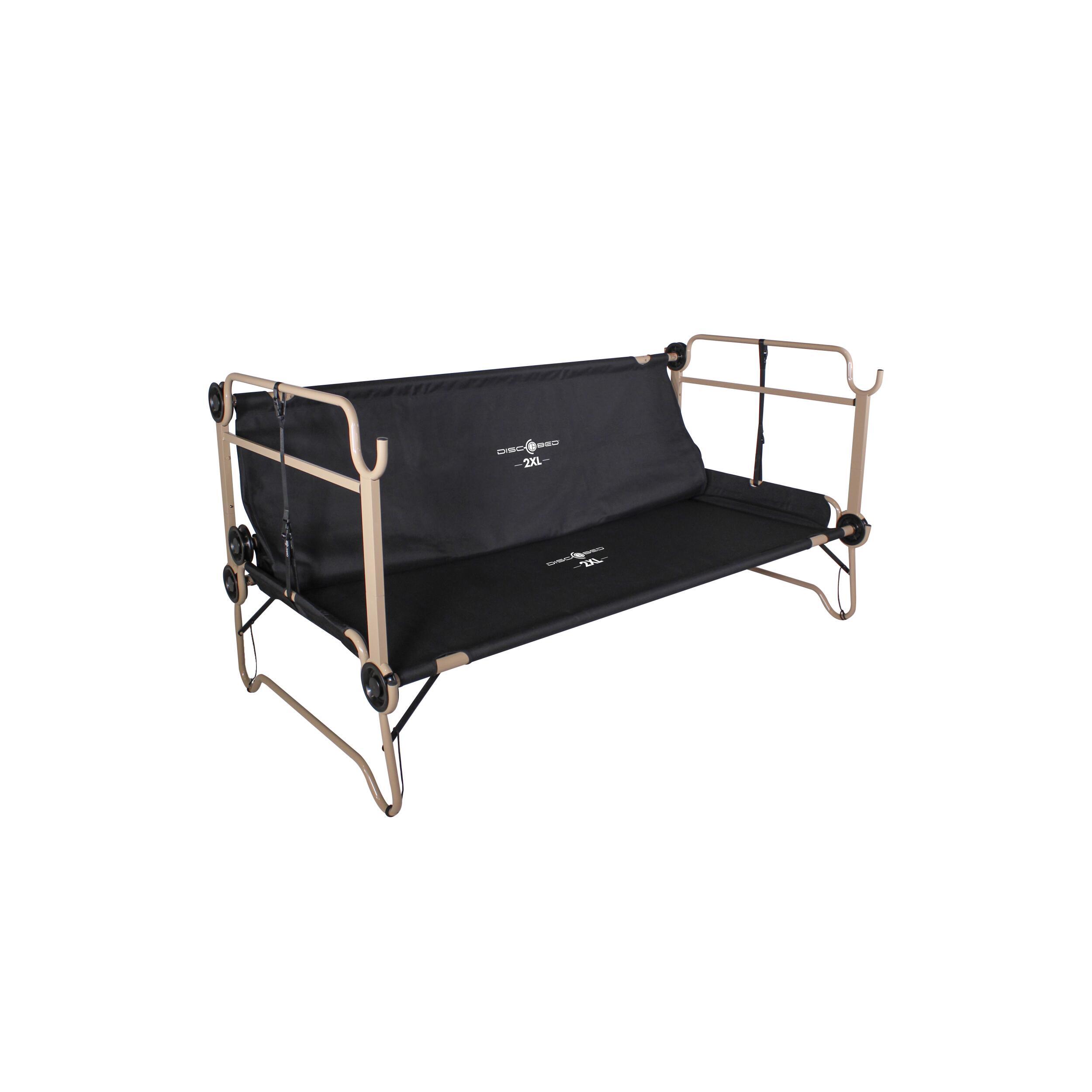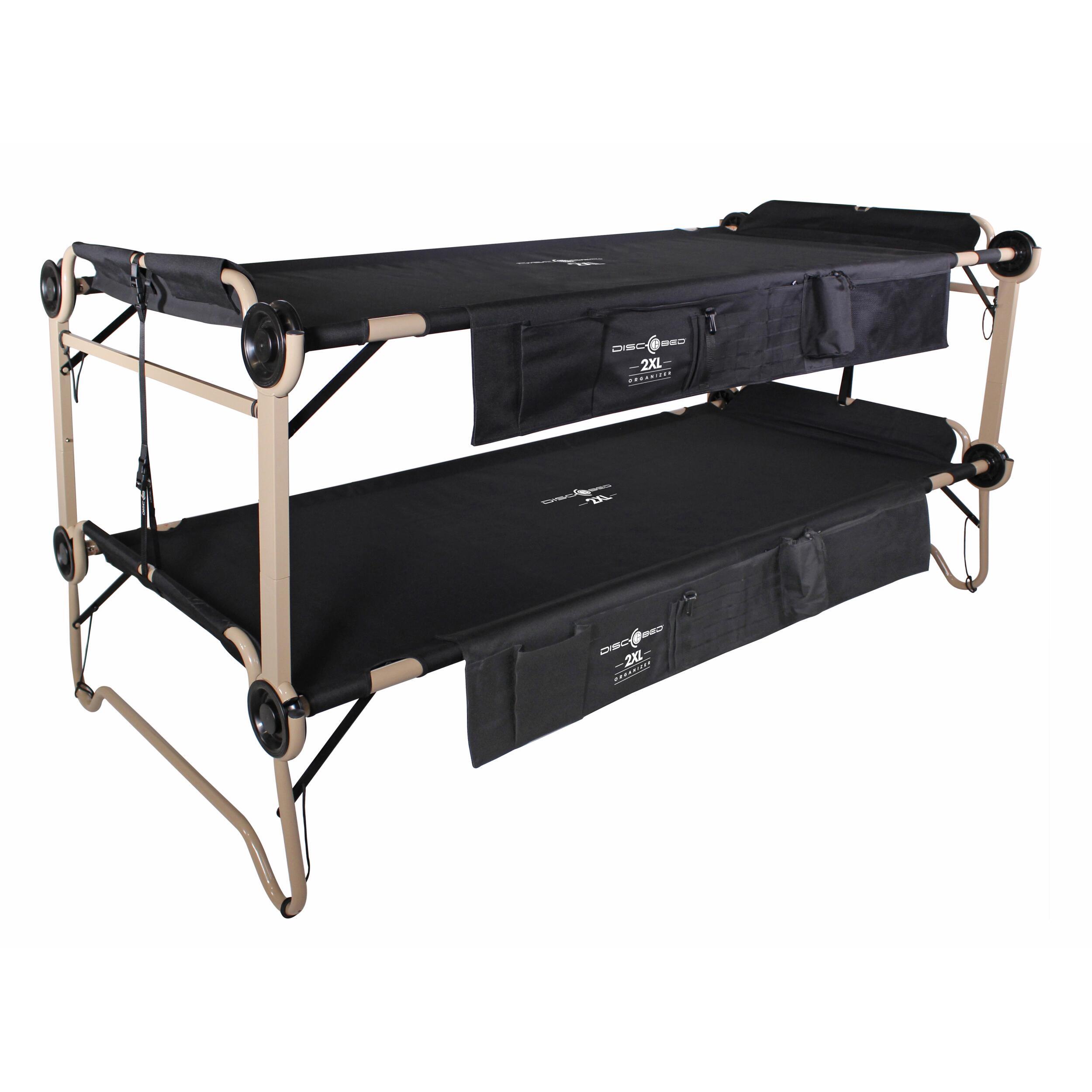 Les lits superposés Disc-O-Bed, avec organiseurs latéraux, offrent un couchage stable et polyvalent pour le camping. Transformables en banc, ils optimisent l’espace et garantissent confort et durabilité.