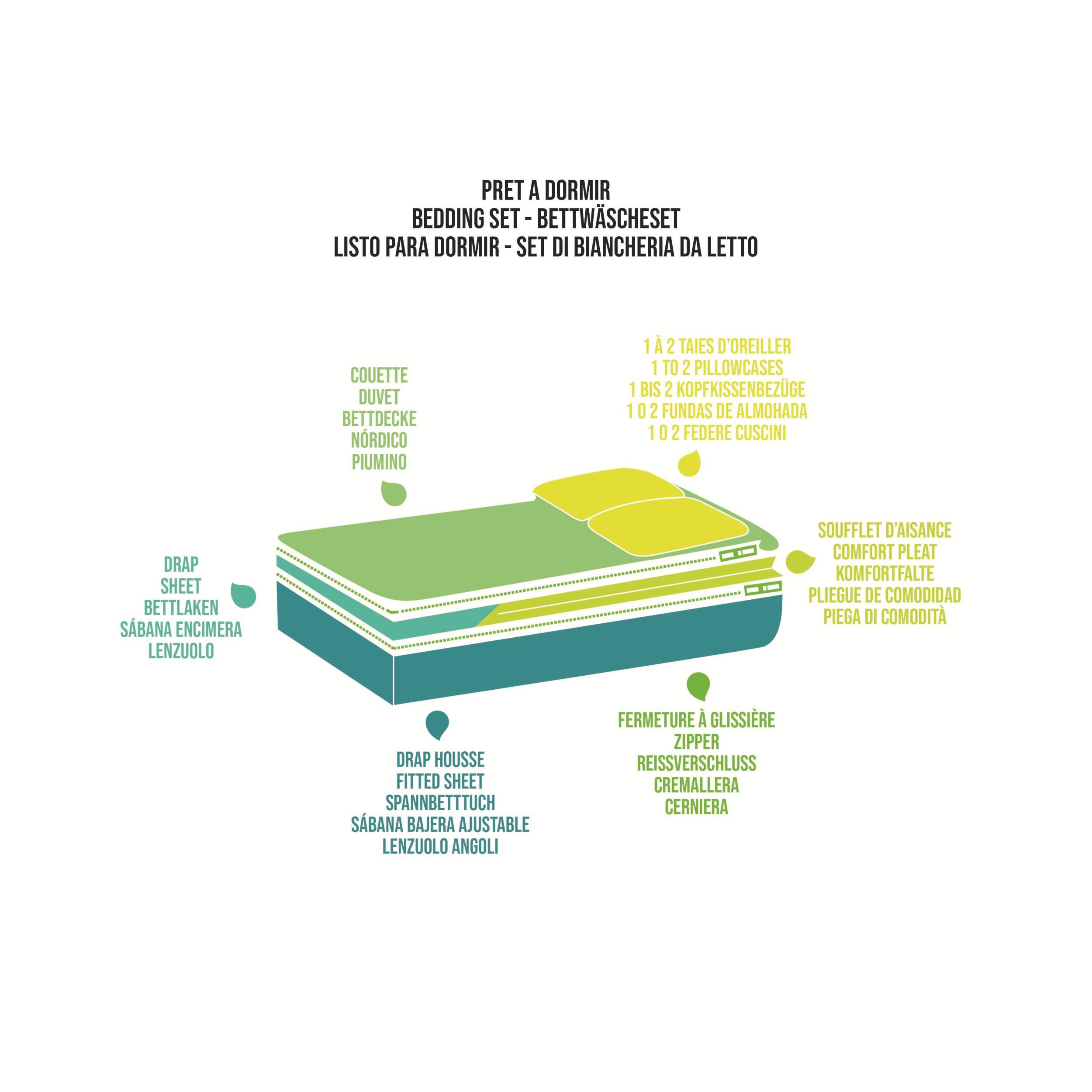 Ce prêt à dormir est un prêt à dormir 2 en 1 : à la fois couette été et couette hiver. Avec ces 2 couettes reliées entre elles par un système de zip, vous en profiterez toute l’année. Vous pouvez ainsi les séparer en fonction de la saison. L’hiver, vous gardez les 2 couettes liées ensemble. L’été, vous détachez l’une des couettes ou les deux s’il fait très chaud.