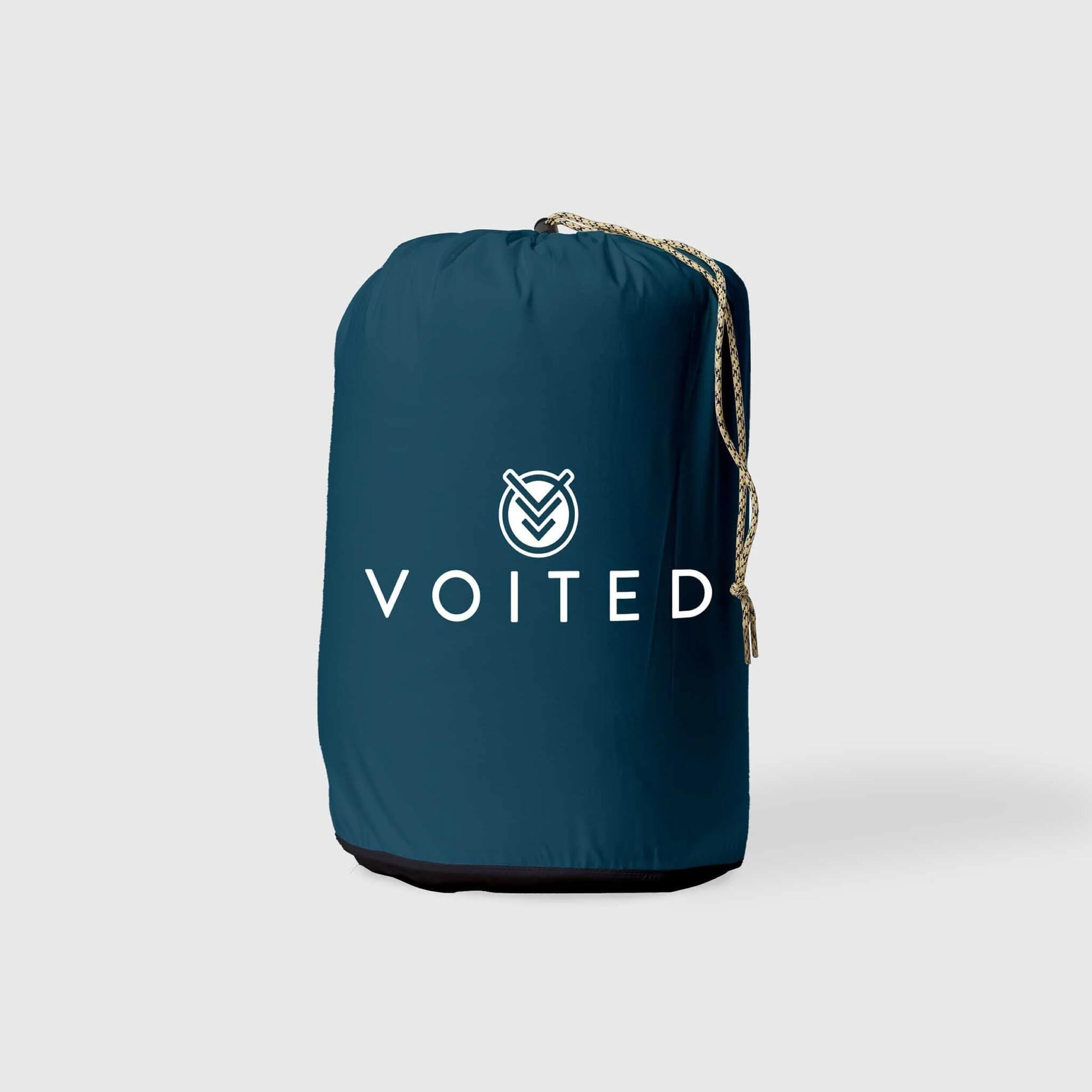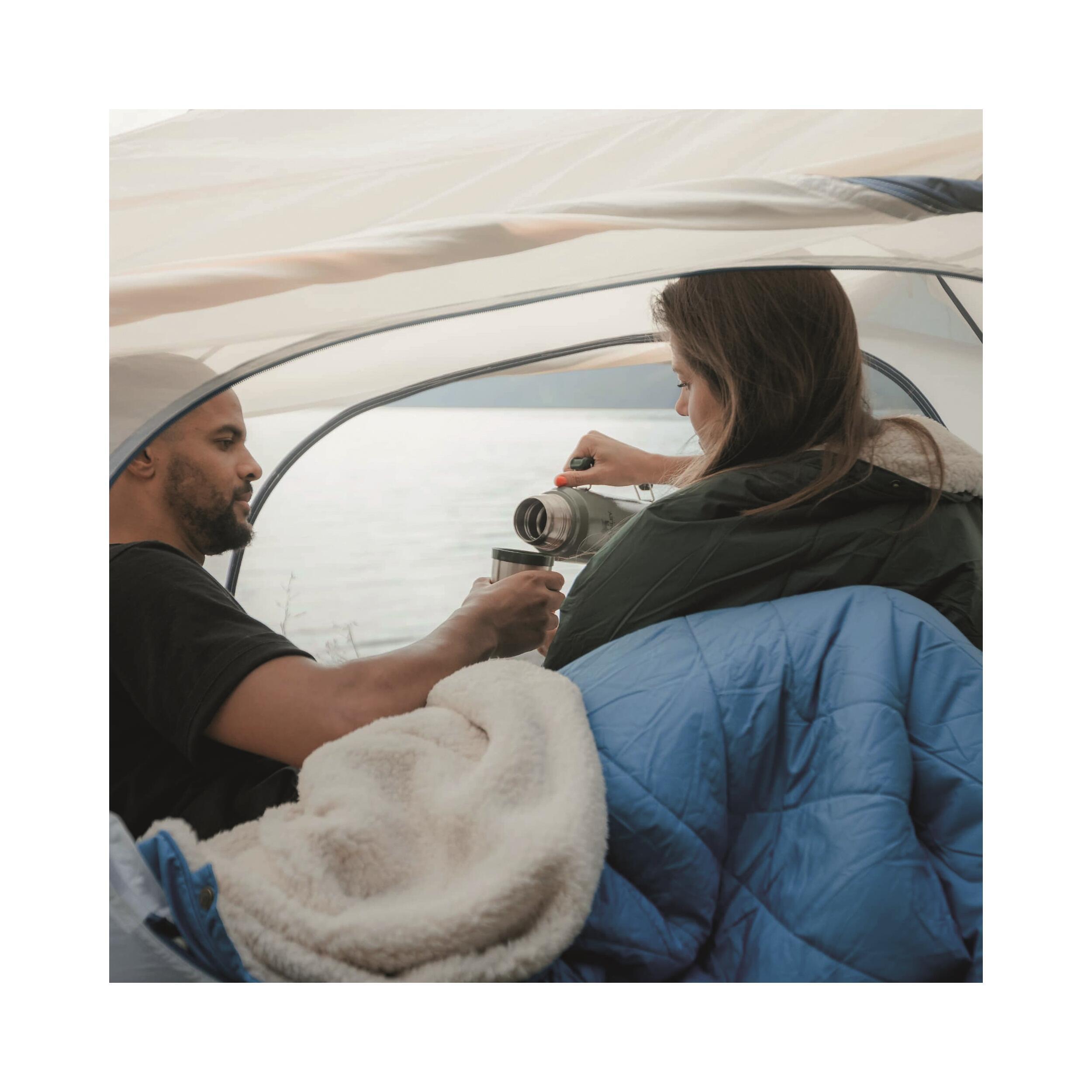 La couverture de camping Voited Cloudtouch, isolée, résistante à l'eau et aux tâches, se transforme en oreiller, sac de couchage ou cape imperméable.