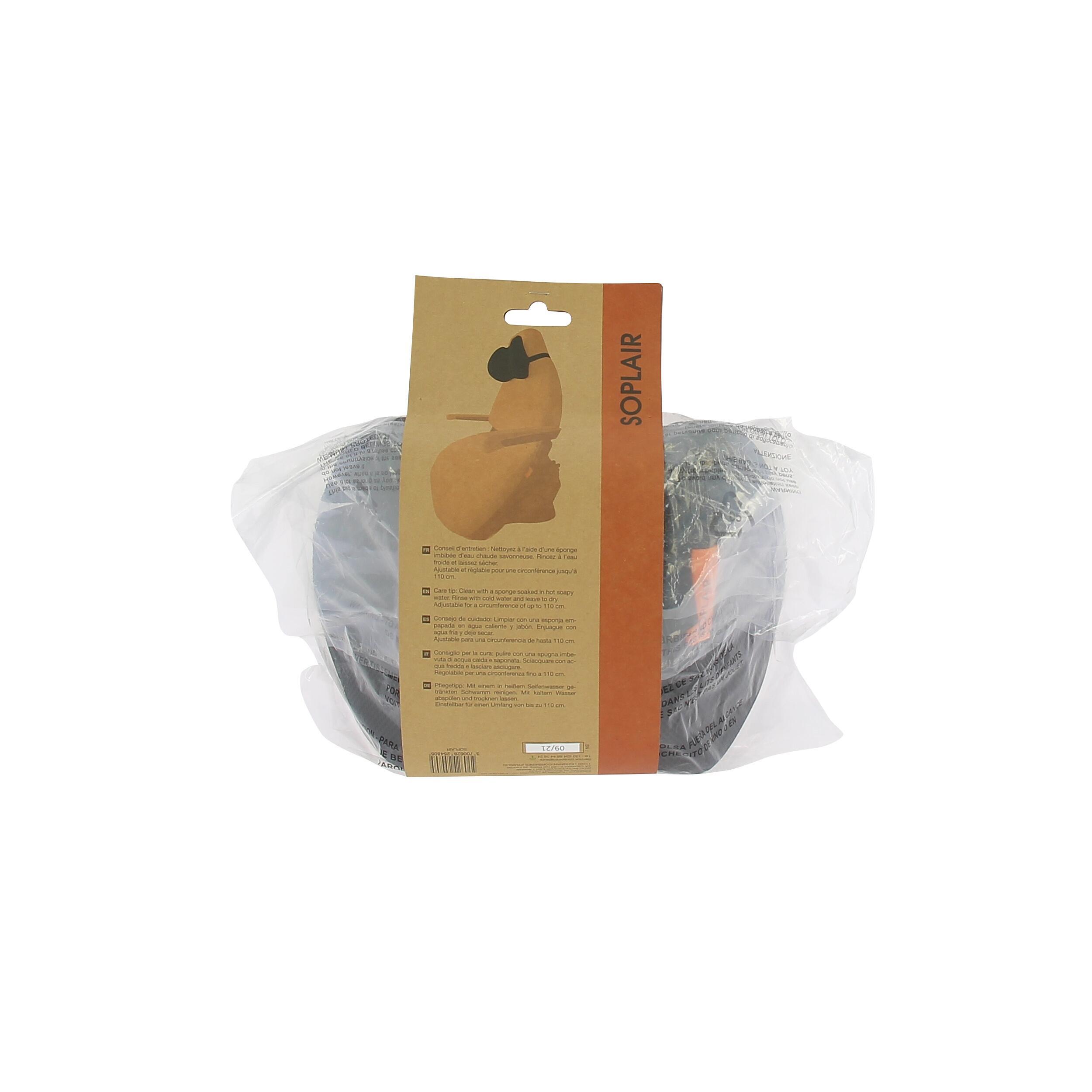 Ajustable et réglable pour une circonférence jusqu'à 110 cm. Dimensions (L x l x H) : 30 x 14 x 22 cm. Poids : 300 g. Coloris noir.