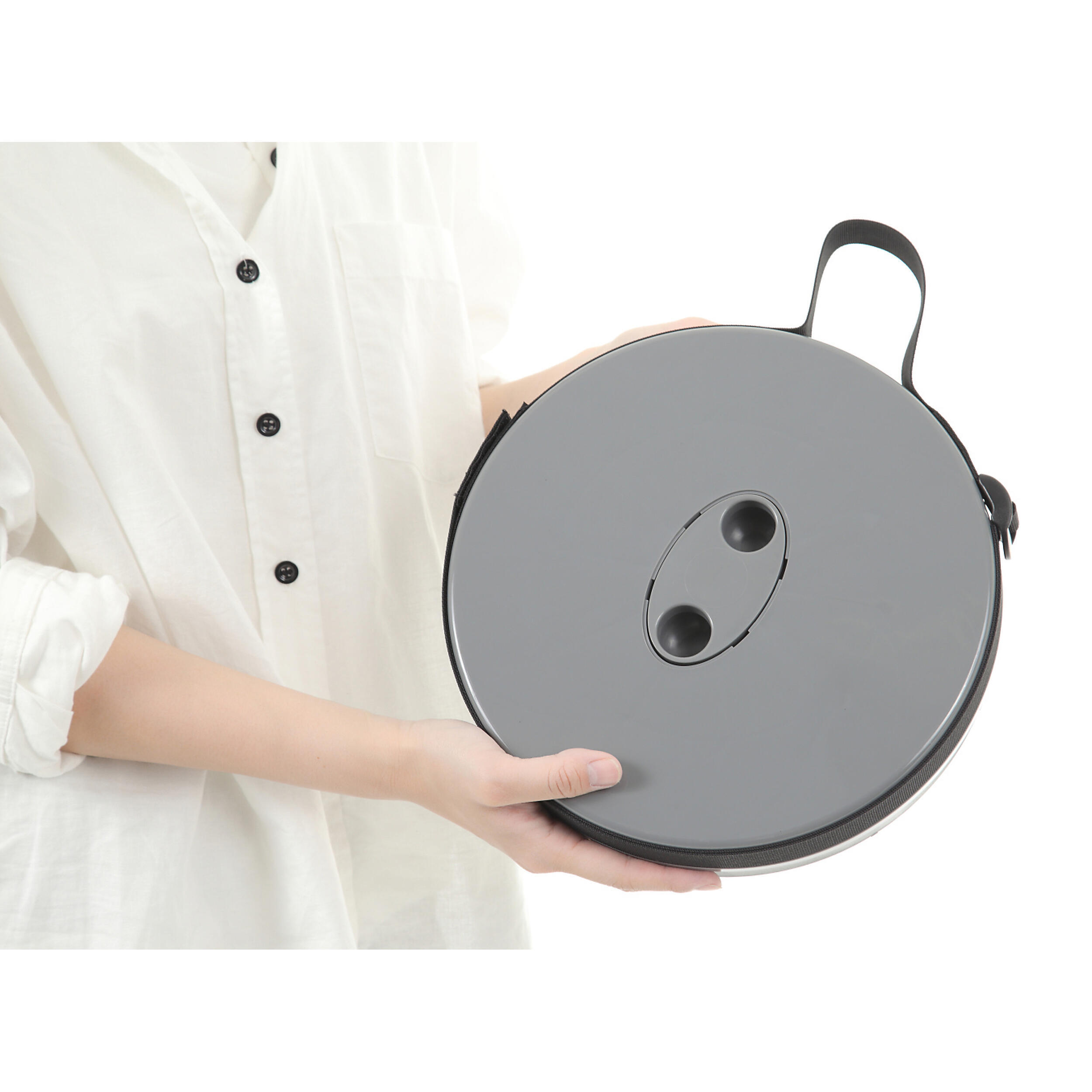 Dans un camping-car, un van ou une caravane, chaque centimètre compte. Le tabouret télescopique Mini Max a été conçu pour se faire oublier quand vous n’en avez pas besoin : une fois plié, il ne mesure que 25 cm de diamètre pour 7 cm d’épaisseur, soit l’encombrement d’une assiette. Vous pouvez le ranger sous une banquette, dans un coffre de rangement ou même accroché à un crochet grâce à sa bandoulière intégrée. Son poids plume, inférieur à 1,3 kg, en fait un compagnon de voyage aussi discret que pratique, idéal pour les sorties improvisées ou les étapes où l’espace extérieur est limité.