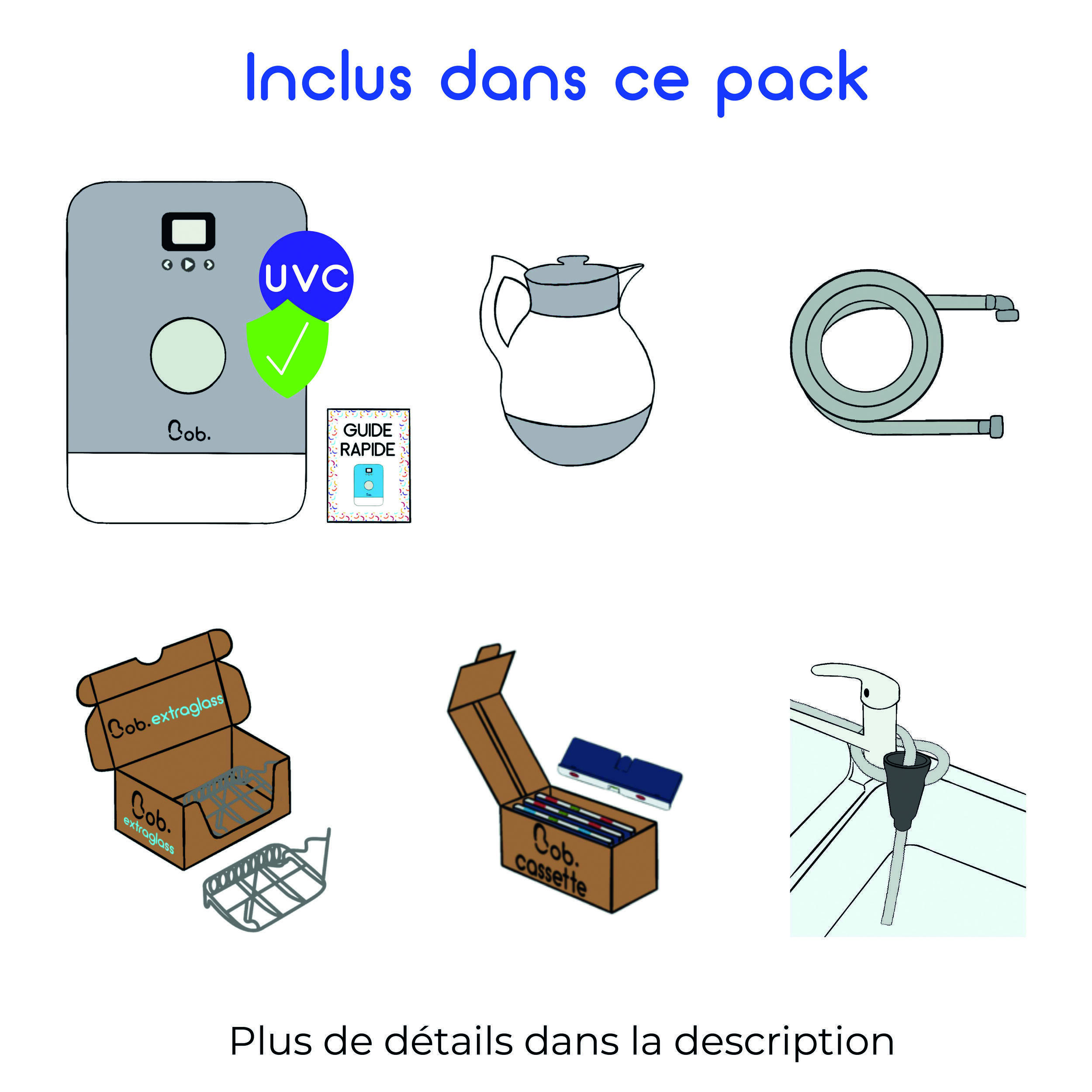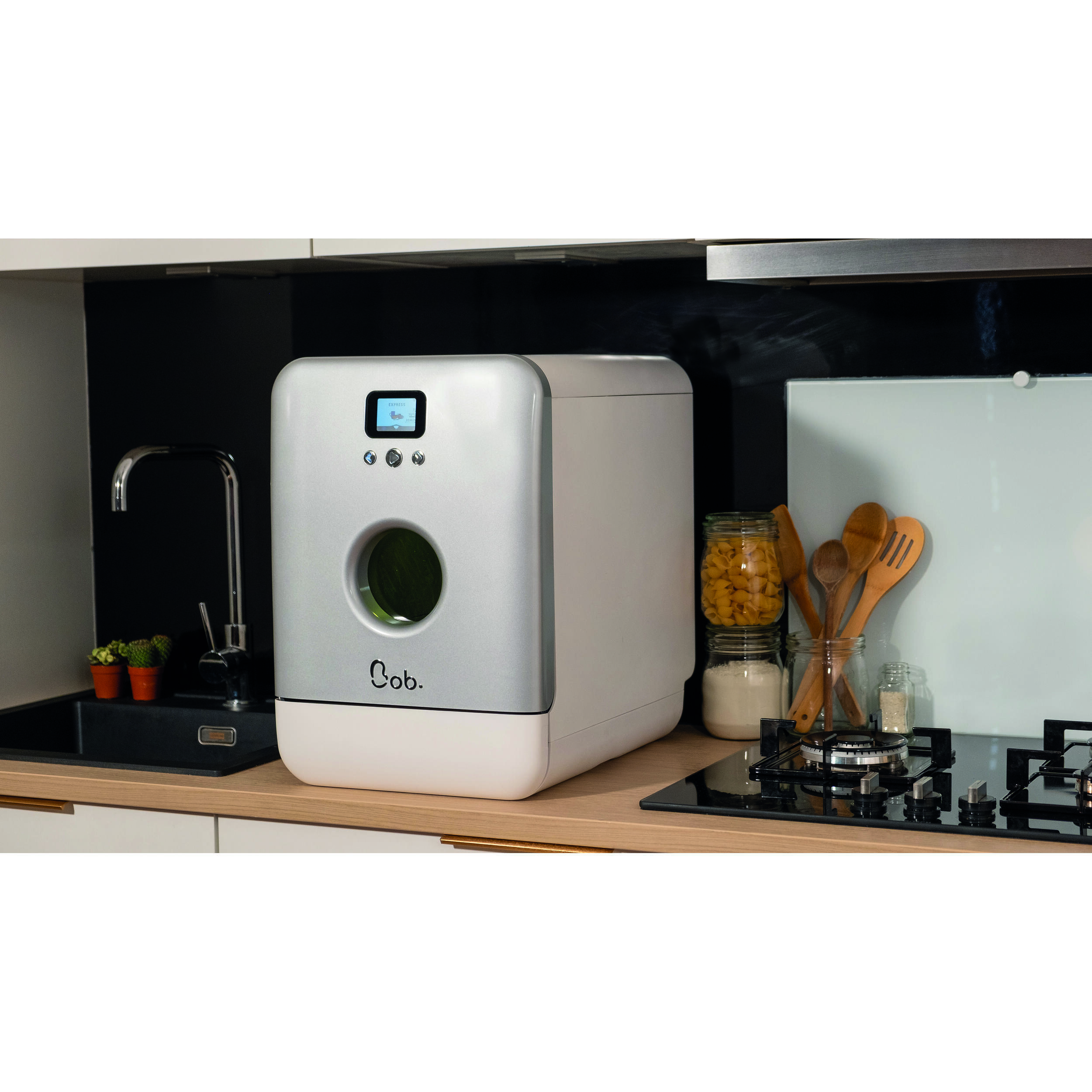 Bob est équipé d’un écran LCD de 2,4 pouces pour une navigation intuitive entre les programmes. La porte s’ouvre automatiquement en fin de cycle pour un séchage naturel, sans consommation d’énergie supplémentaire. La désinfection UV-C, disponible en option, élimine 99,9 % des bactéries sans utiliser d’eau, idéale pour les ustensiles de bébé ou les verres à boire. Le panier modulable, inspiré des modèles professionnels, s’adapte à vos besoins : assiettes jusqu’à 29 cm, verres ou tasses (jusqu’à 16), et couverts grâce aux trois paniers intégrés. Les picots rabattables et les pieds réglables facilitent son installation, même sur des surfaces irrégulières.