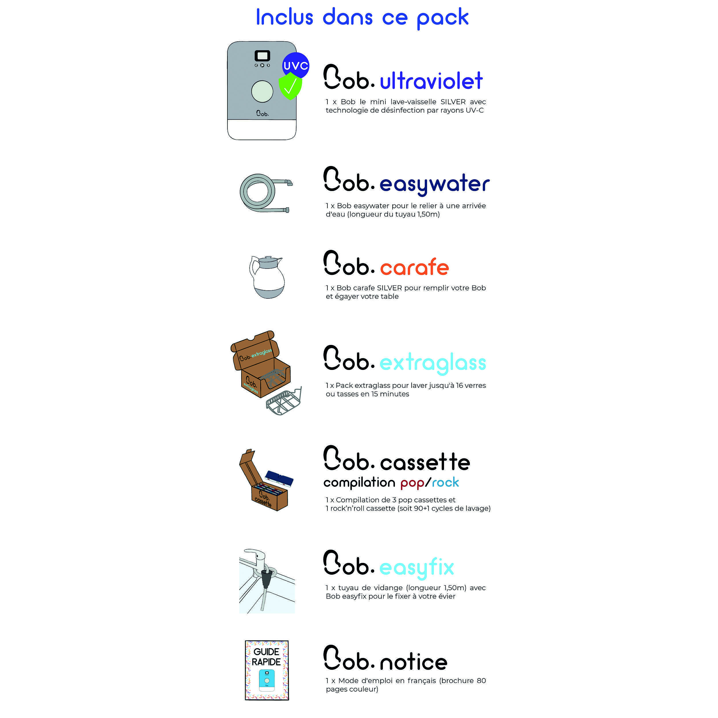Bob est conçu pour durer, avec une cuve en polypropylène résistante et un système de dosage automatique des pastilles de lavage. Les cassettes Pop, fournies avec l’appareil, contiennent 30 doses chacune et se remplacent facilement après 90 lavages. Le modèle Rock’n’Roll permet de recharger la cassette sans avoir à en racheter une neuve, un avantage écologique et économique. Le filtre est accessible en un clin d’œil pour un nettoyage régulier, garantissant une performance optimale à chaque utilisation.