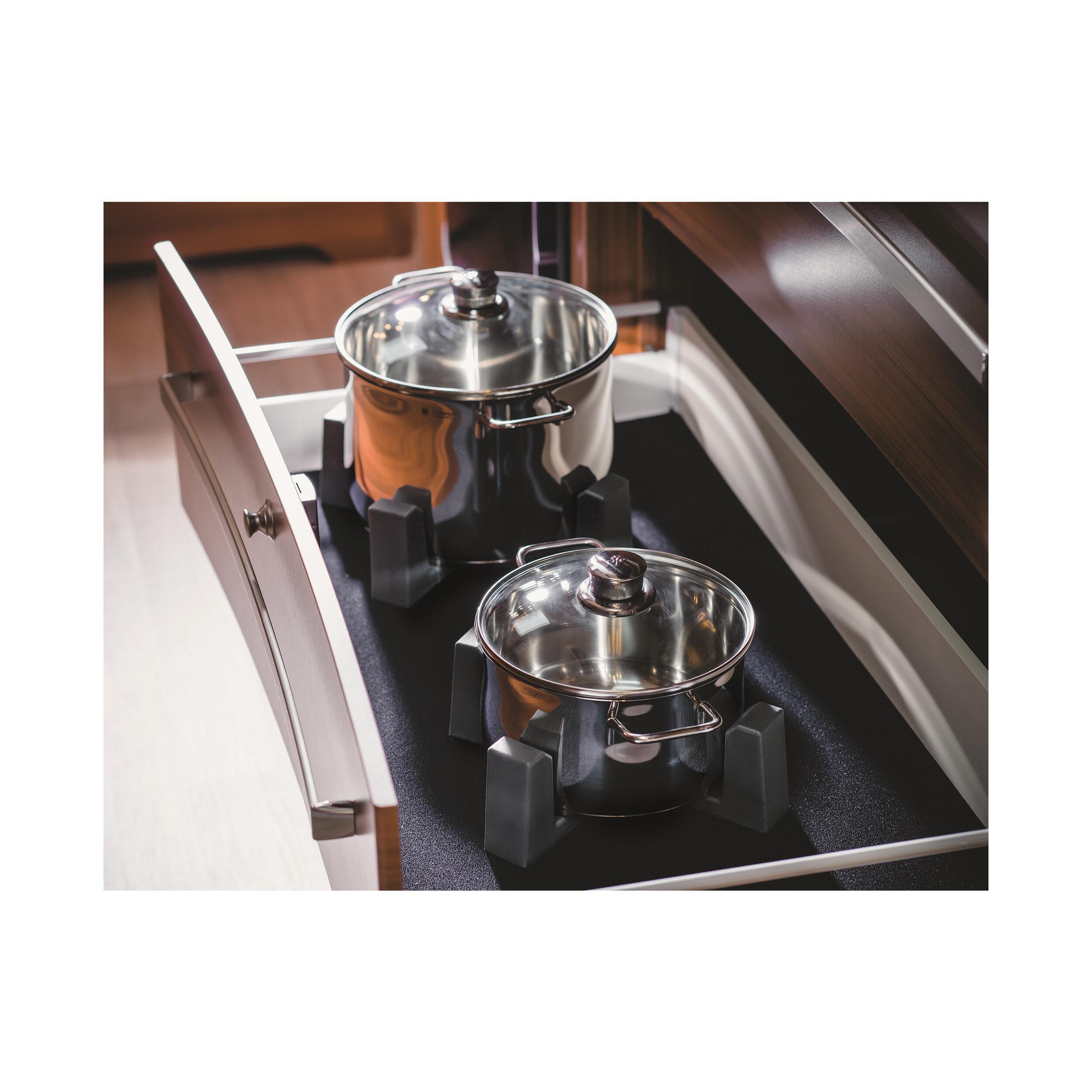 Transportez en toute sécurité et sans bruit vos tasses, verres, bouteilles, assiettes, récipients en tout genre ou encore vos boîtes de conserve. Les cales de blocage Vario vous offrent de nombreuses possibilités d‘utilisations de votre espace de rangement.