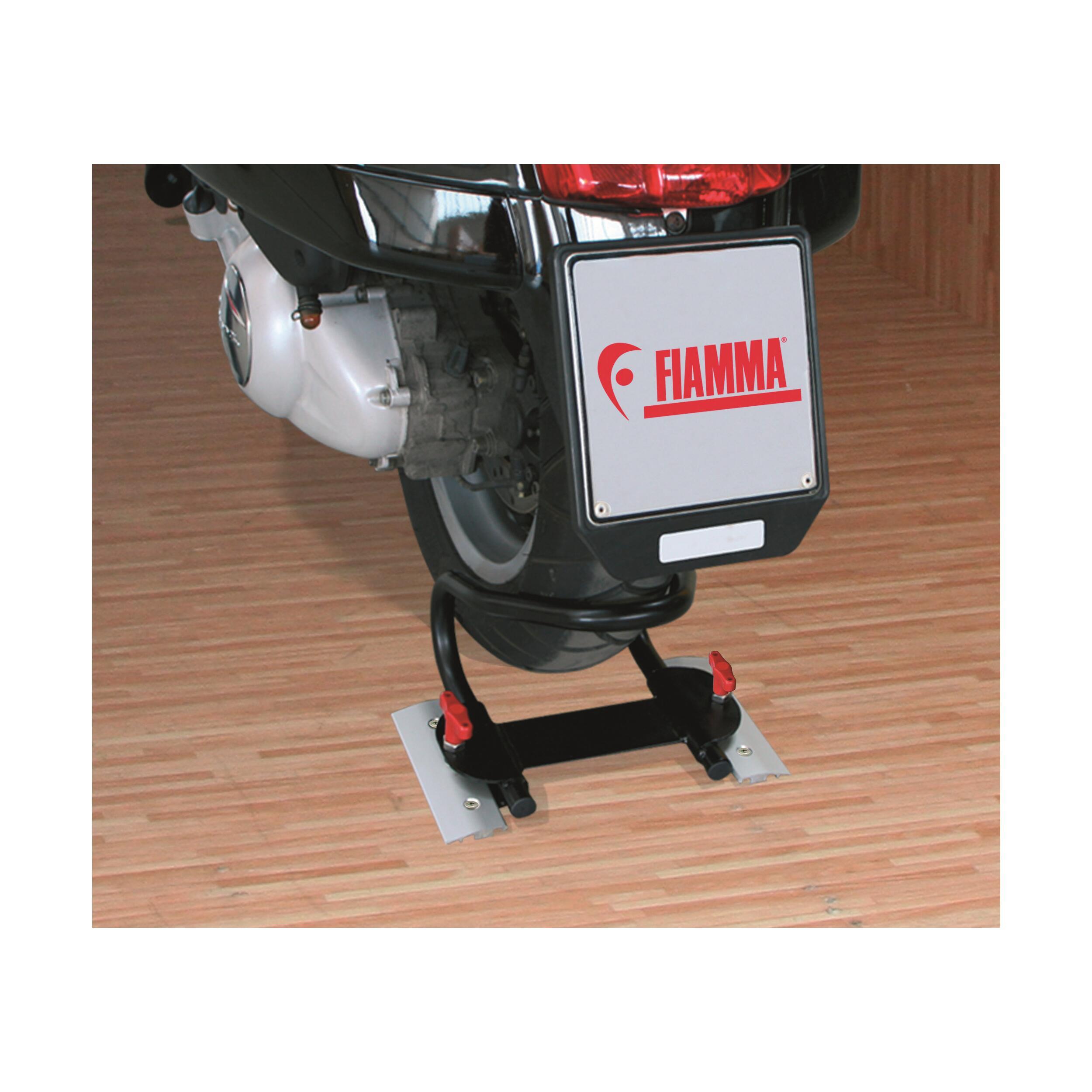 Dispositif de blocage de roue pour votre moto à utiliser avec le Carry-Ramp. En acier verni noir.