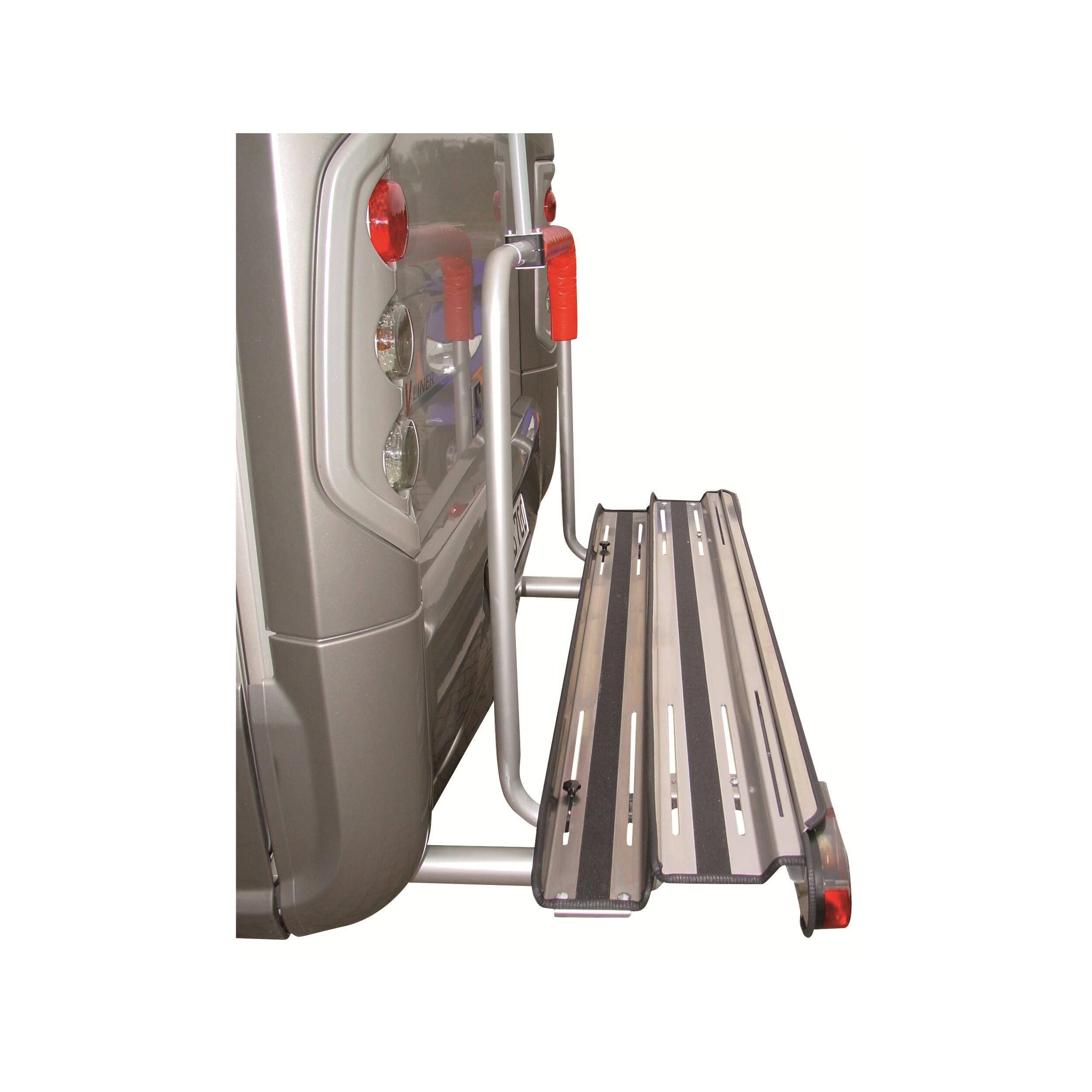 Porte-moto sur châssis en acier galvanisé et aluminium, particulièrement léger. Le rail et la rampe d'accès sont équipés d'un revêtement antidérapant garantissant une bonne adhérence des pneus.