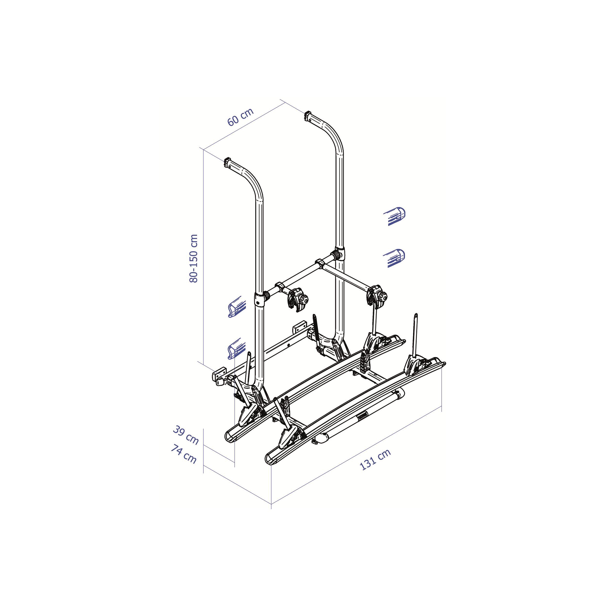 Recommandé pour une paroi de 80 à 150 cm. Poids : 9 kg. Charge max. : 60 kg. Avec 2 rails et 2 Bike Holders.
