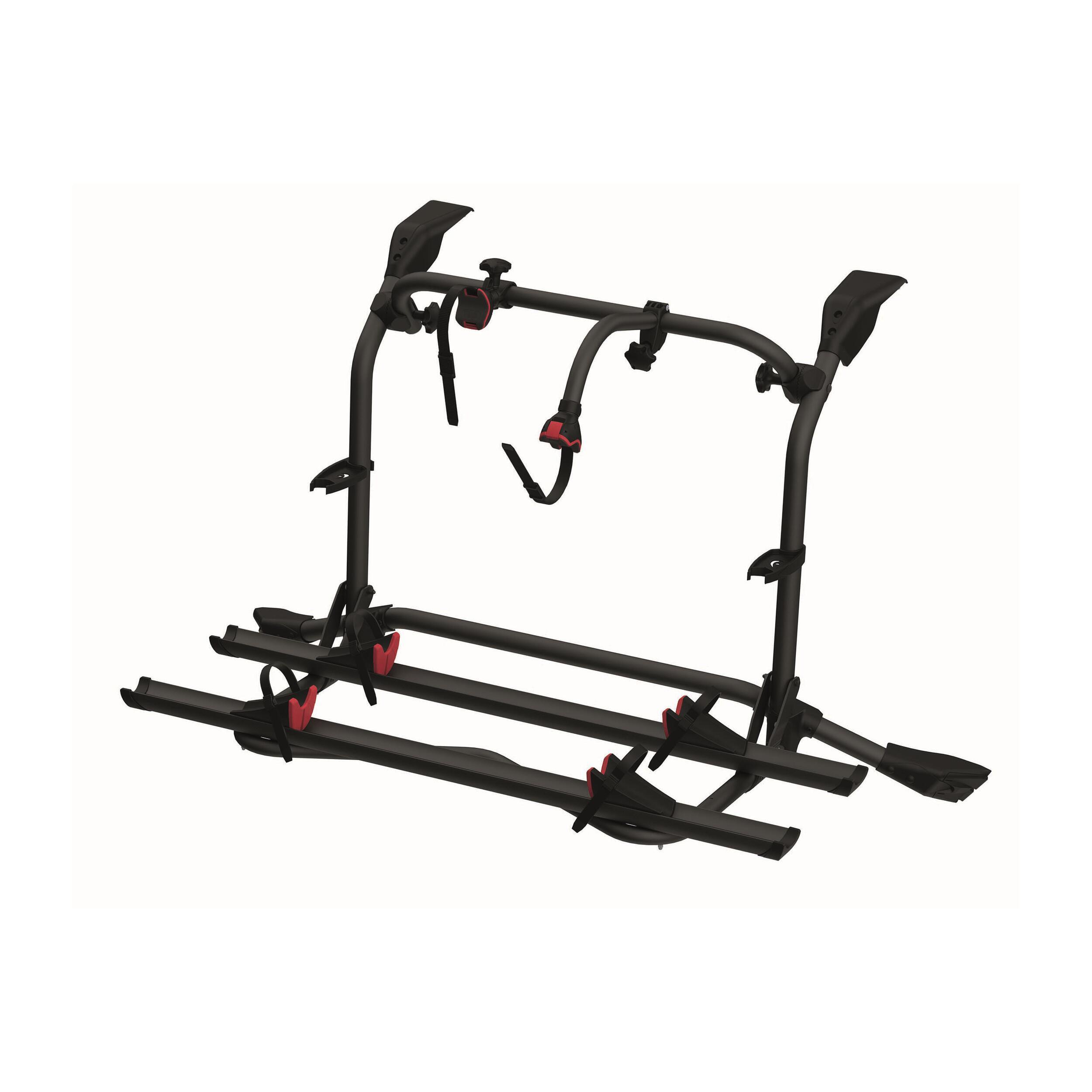 Le Carry-Bike permet de transporter 2 vélos (ou plus selon les modèles) avec un maintien optimal. Les vélos sont fixés à l’aide de rails en aluminium solides, de bras de maintien réglables et d’une sangle de sécurité Fiamma Security Strip fournie de série, pour une parfaite tenue sur route, même en cas de freinage brusque ou de virage serré.