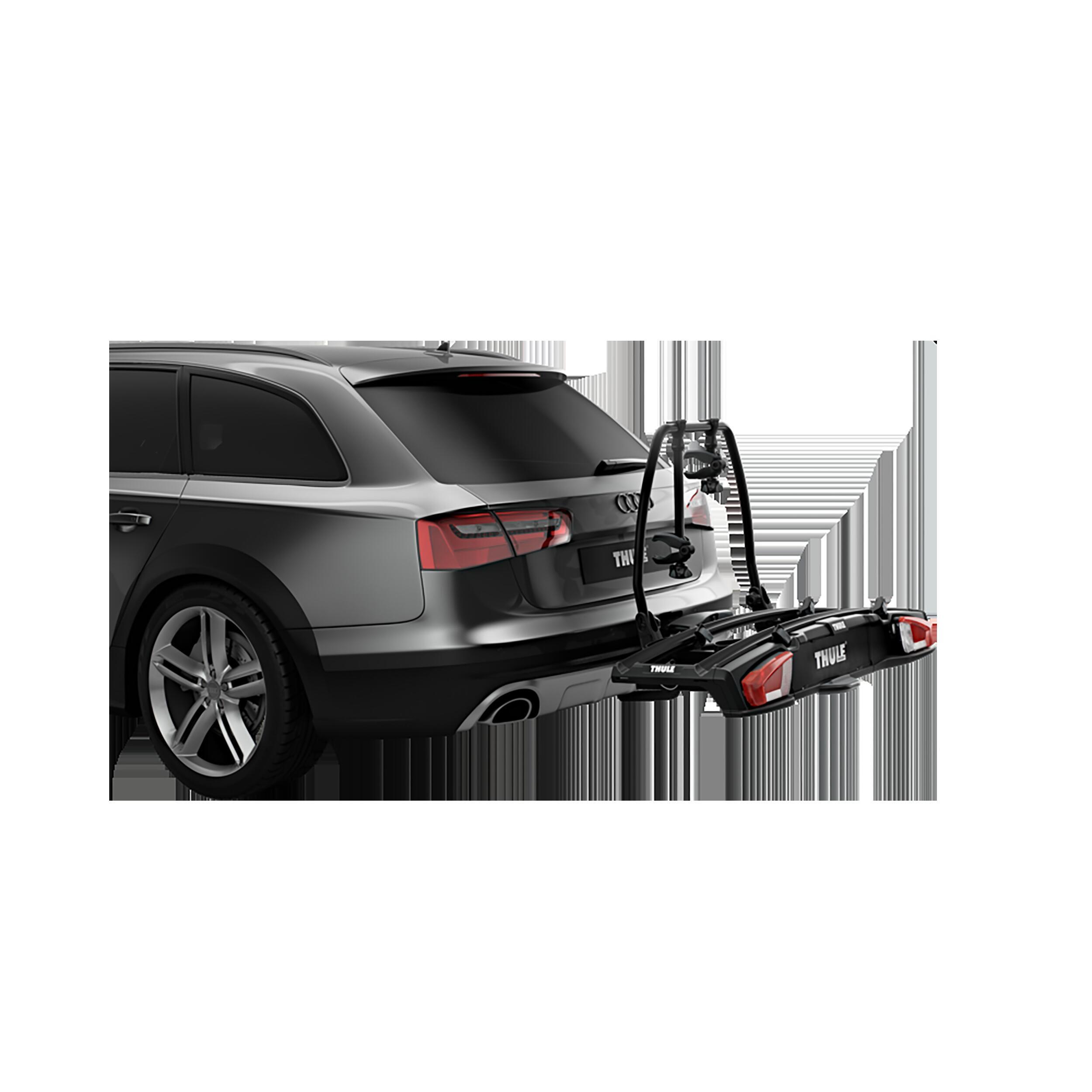 Le Thule VeloSpace XT 13PIN est un porte-vélos sur boule d'attelage, offrant un accès facile au coffre même avec les vélos fixés et se rangeant facilement lorsqu'il n'est pas utilisé.