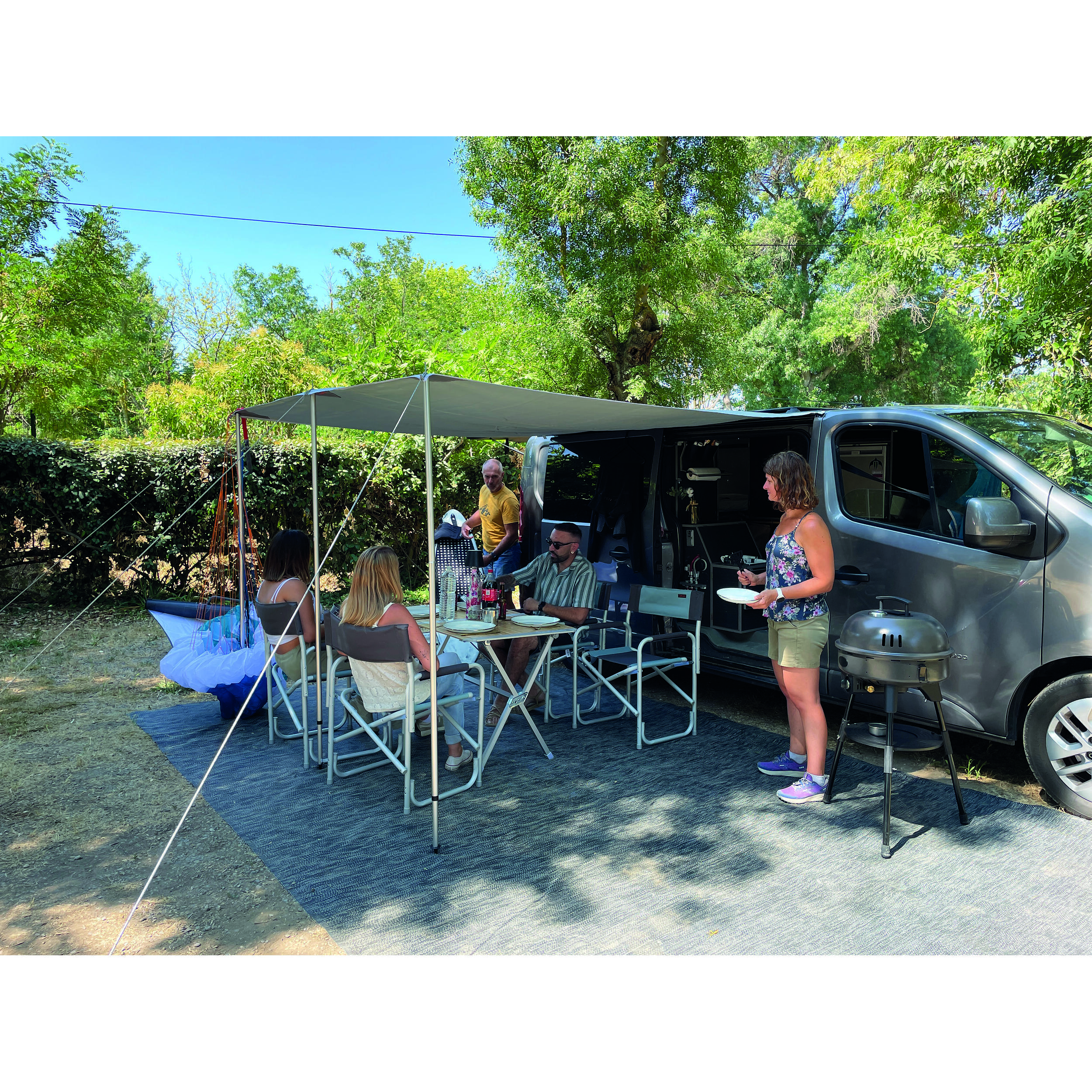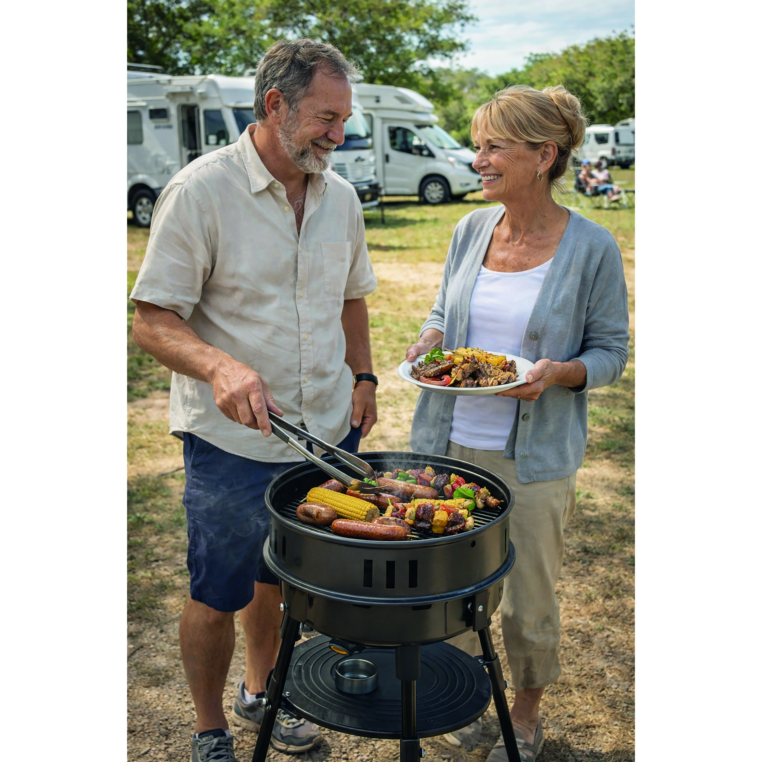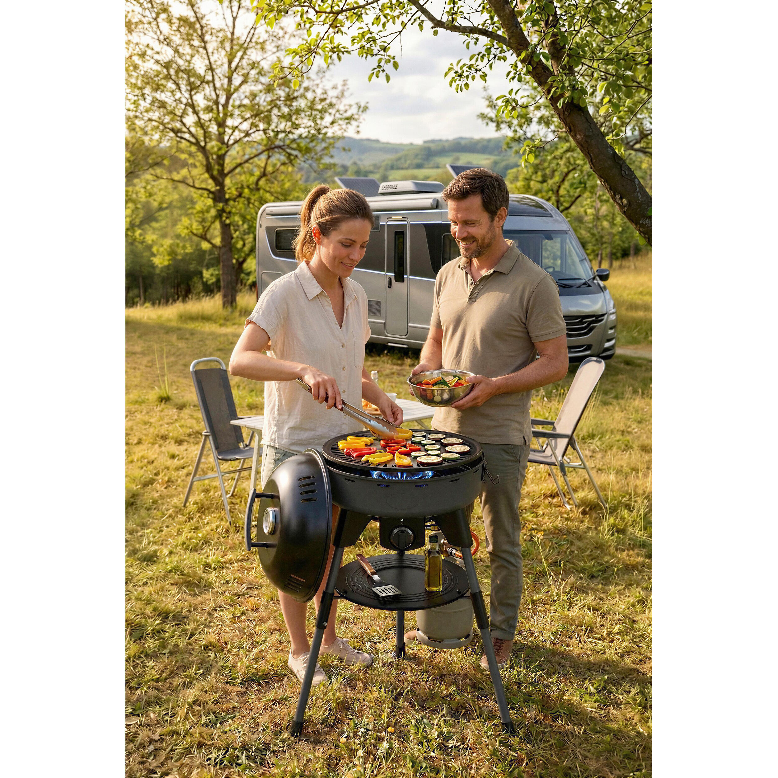 Avec ses 12 kg seulement, ce barbecue se glisse sans effort dans le coffre de votre véhicule ou la soute de votre camping-car. Ses pieds amovibles et sa poignée intégrée facilitent son installation sur n’importe quel terrain, même accidenté. Le plateau plastique et le support casserole inclus transforment ce modèle en une véritable cuisine d’appoint, idéale pour préparer des accompagnements ou réchauffer une soupe en parallèle de vos grillades. La coupe à fumer, quant à elle, élargit vos possibilités culinaires : saumon fumé, magret ou même fromage, tout devient possible. Un sac de rangement est fourni pour protéger le barbecue lors des trajets et optimiser son stockage.