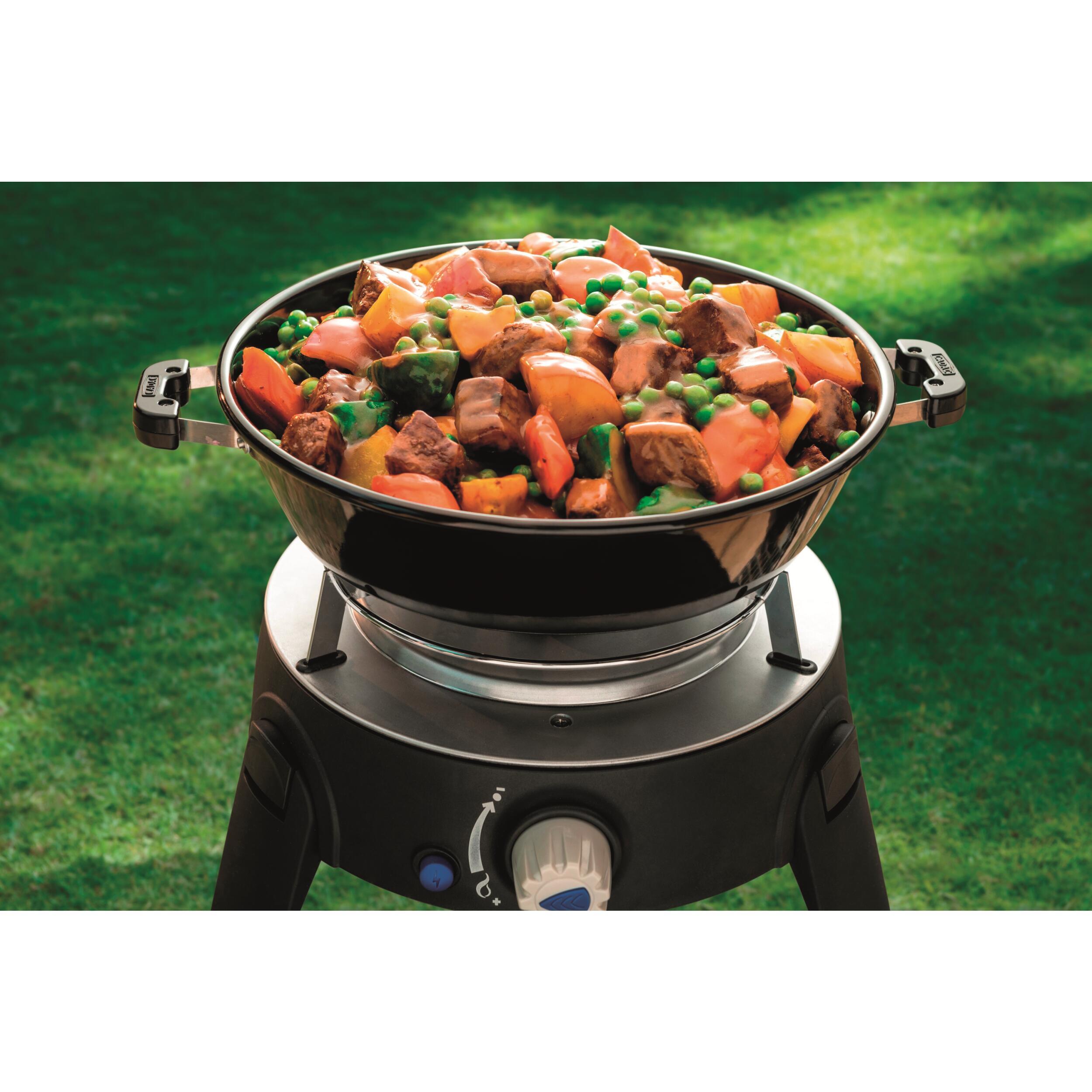 Grâce à son allumage piezo électrique, le Safari Chef 30 LP s'allume en un instant, sans effort. Sa puissance de 1,8 kW et sa consommation de 130 g/h assurent une montée en température rapide. Le diffuseur de chaleur sous la grille BBQ garantit une répartition uniforme de la chaleur, évitant les zones froides ou trop chaudes.