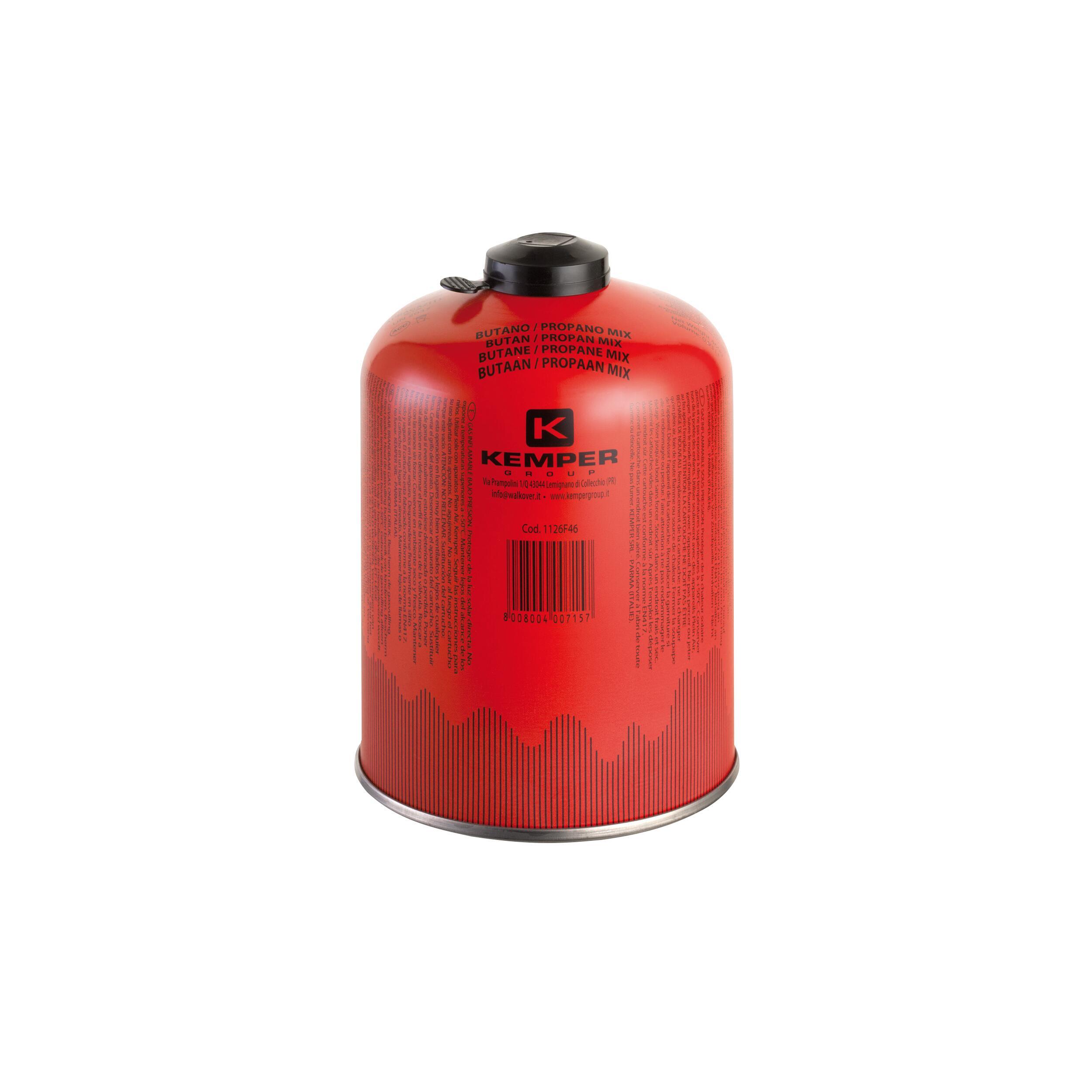 Bouteille de gaz 450g à valve 7/16 KEMPER. Se dévisse et revisse sans aucun risque de fuite. Cartouche gaz idéale pour les réchauds de camping et barbecues.