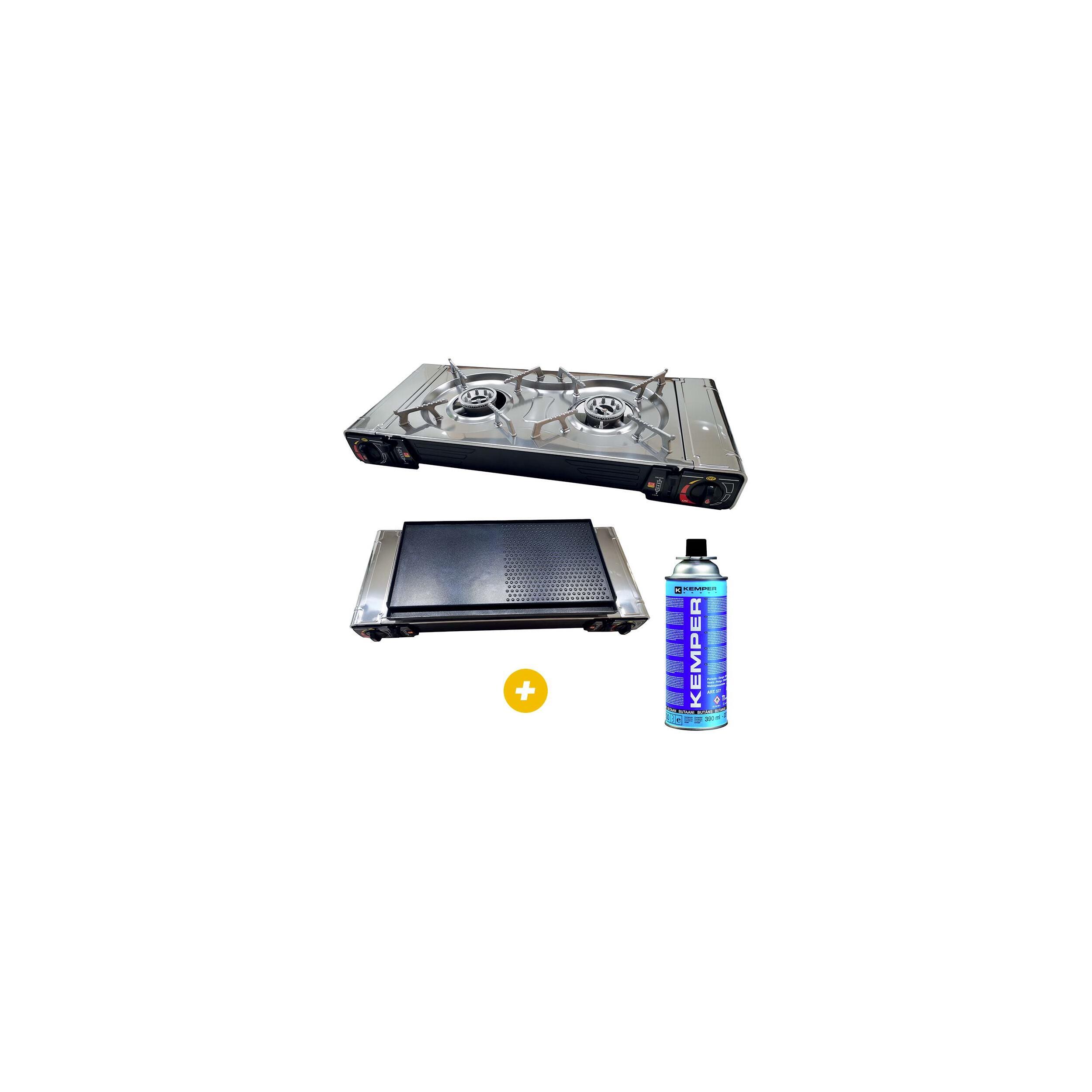 Cartouche de gaz + réchaud 2 feux + Plancha